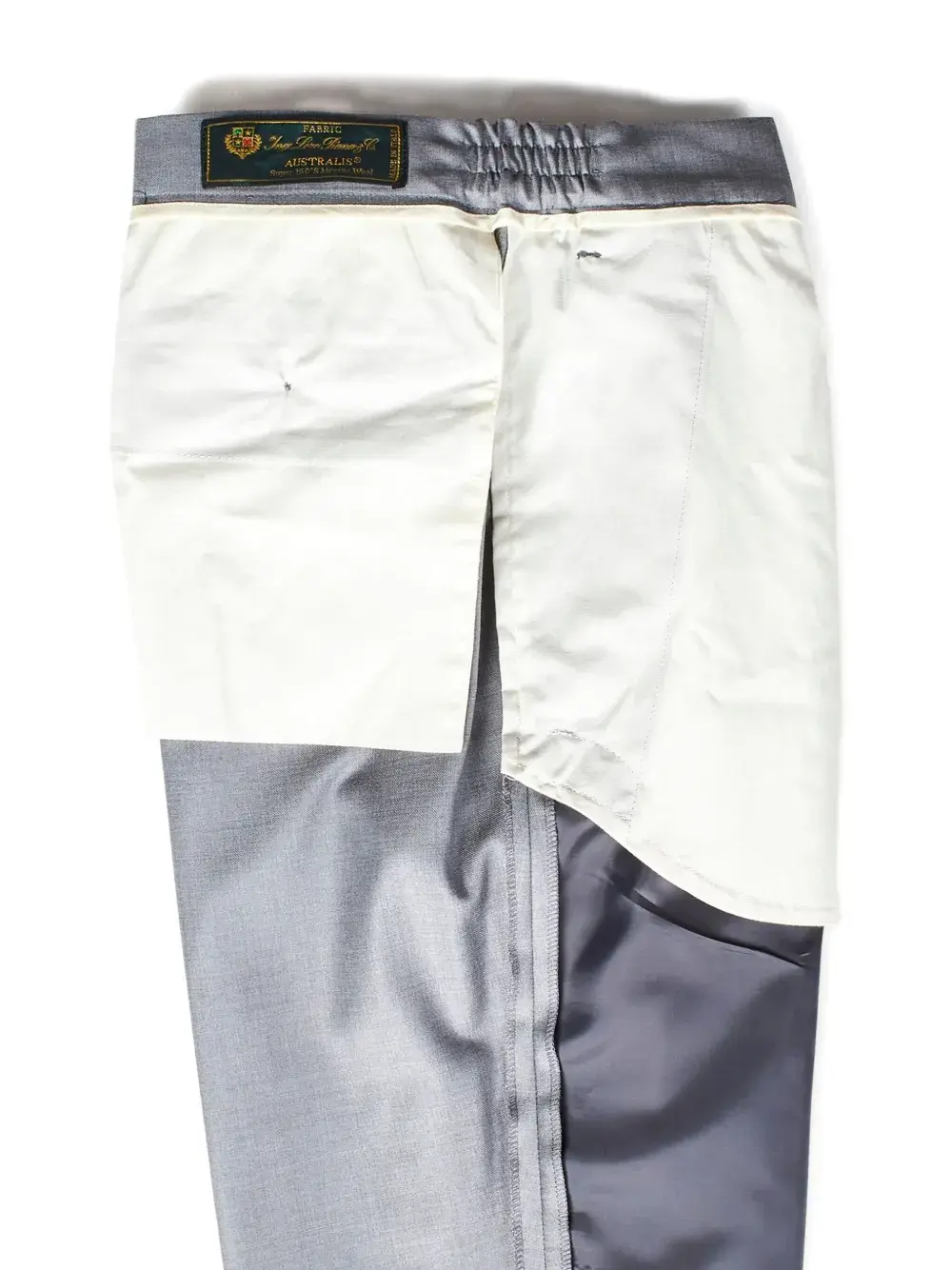 Серый цвет, скрытая застежка на пуговицы и молнию, складки