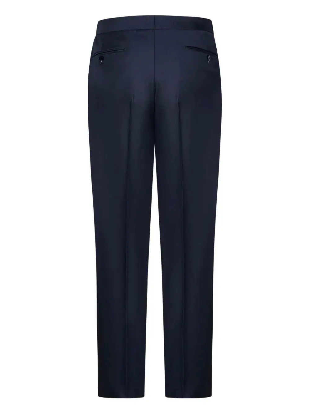 Темно-синий цвет, застежка на молнию и пуговицу, складки