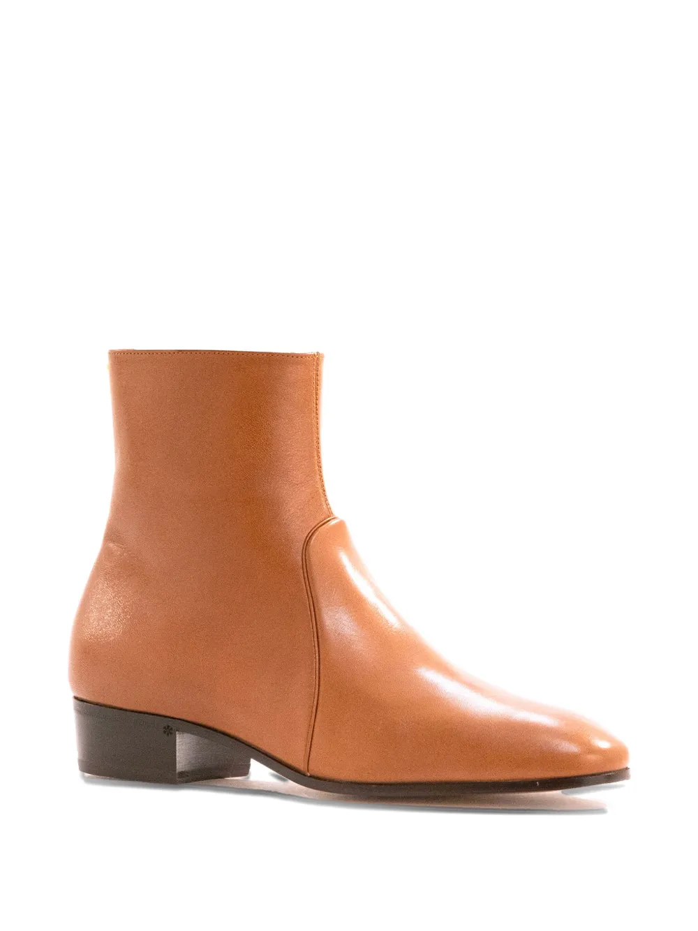 Светло-коричневый кожа заостренный нос низкий каблук застежка-молния сбоку