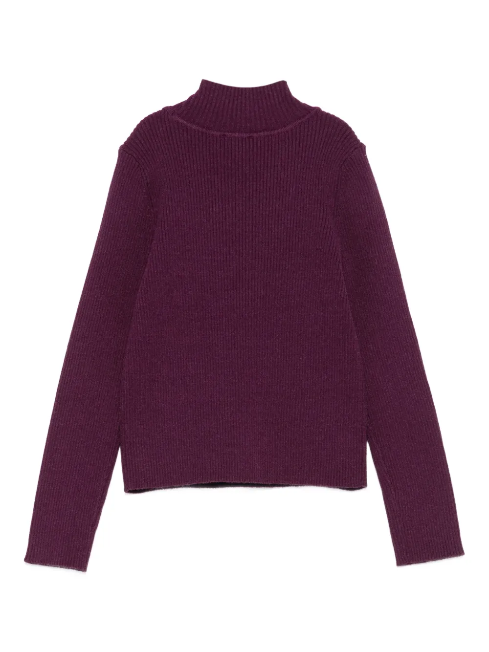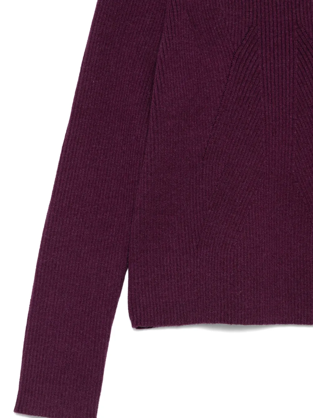 Бордовый в рубчик высокий ворот длинные рукава нашивка с логотипом золотистого цвета