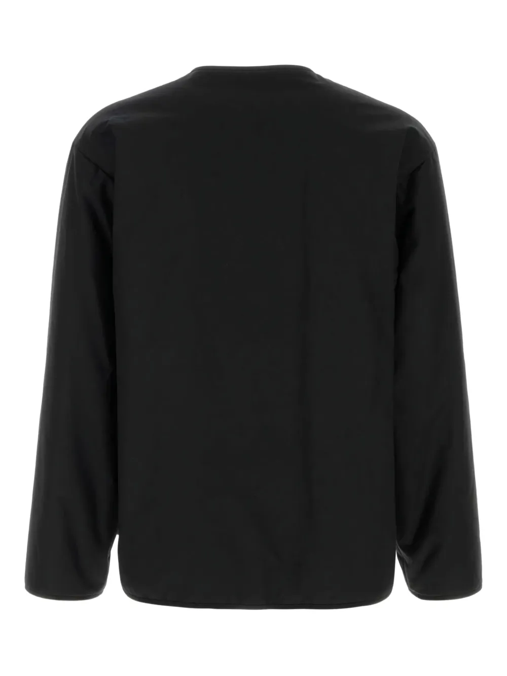 Черный хлопок застежка-молния спереди стеганый дизайн длинные рукава круглый вырез