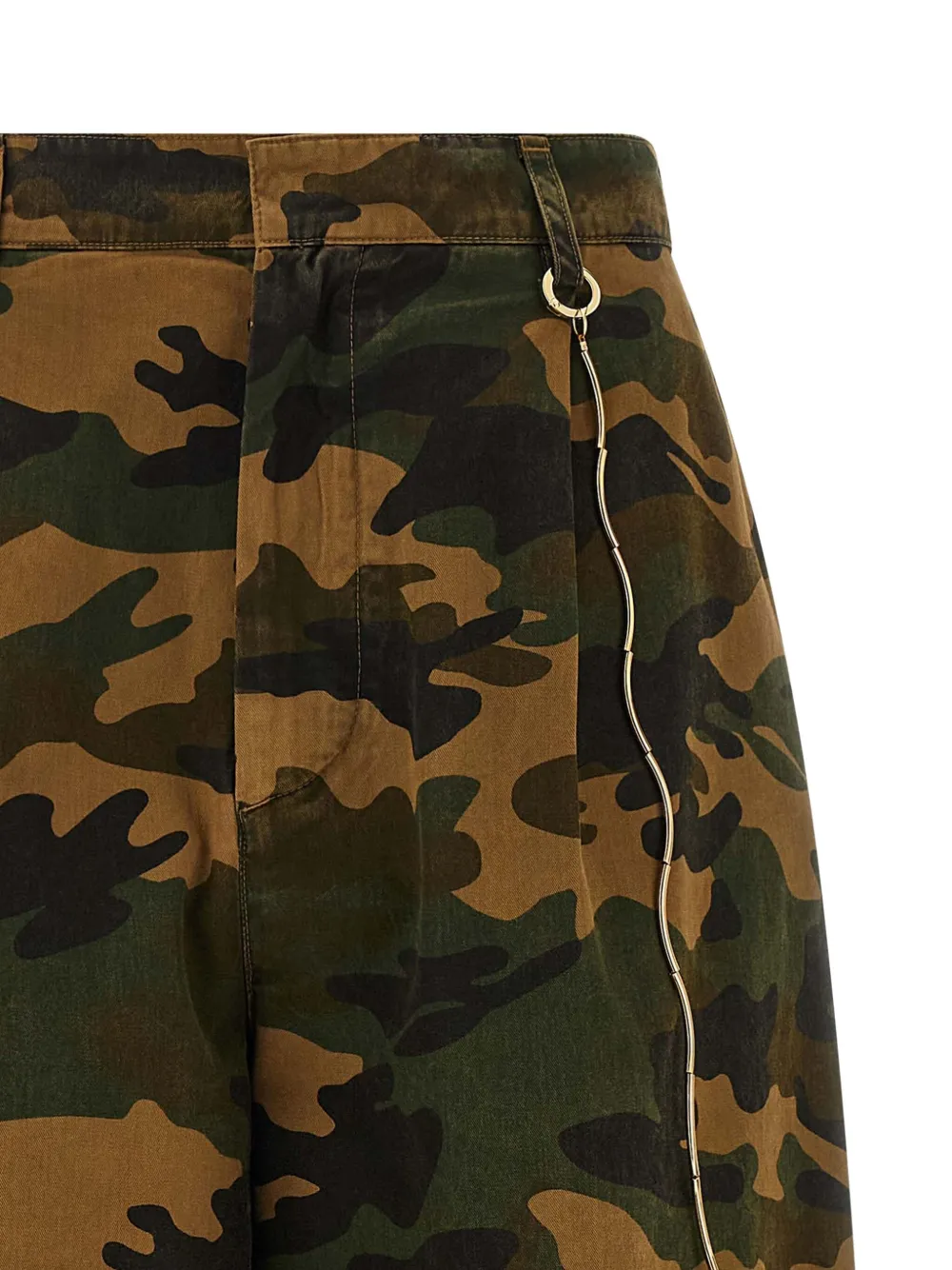 Коричневый камуфляжный принт декор цепочкой скрытая застежка спереди боковые карманы хлопок