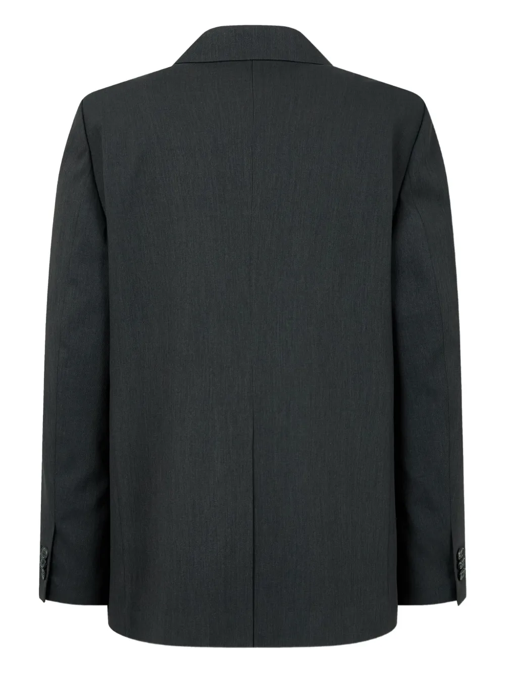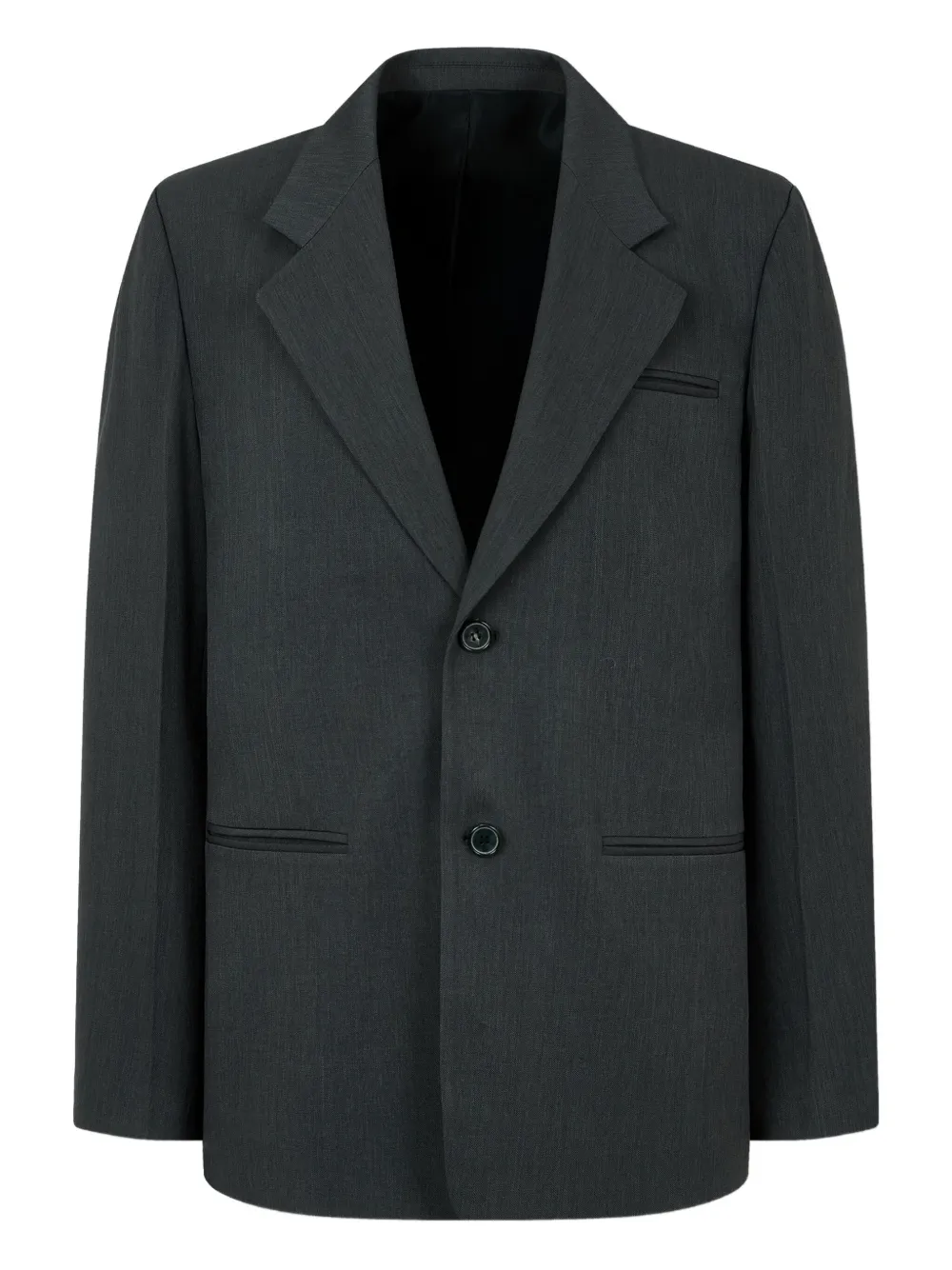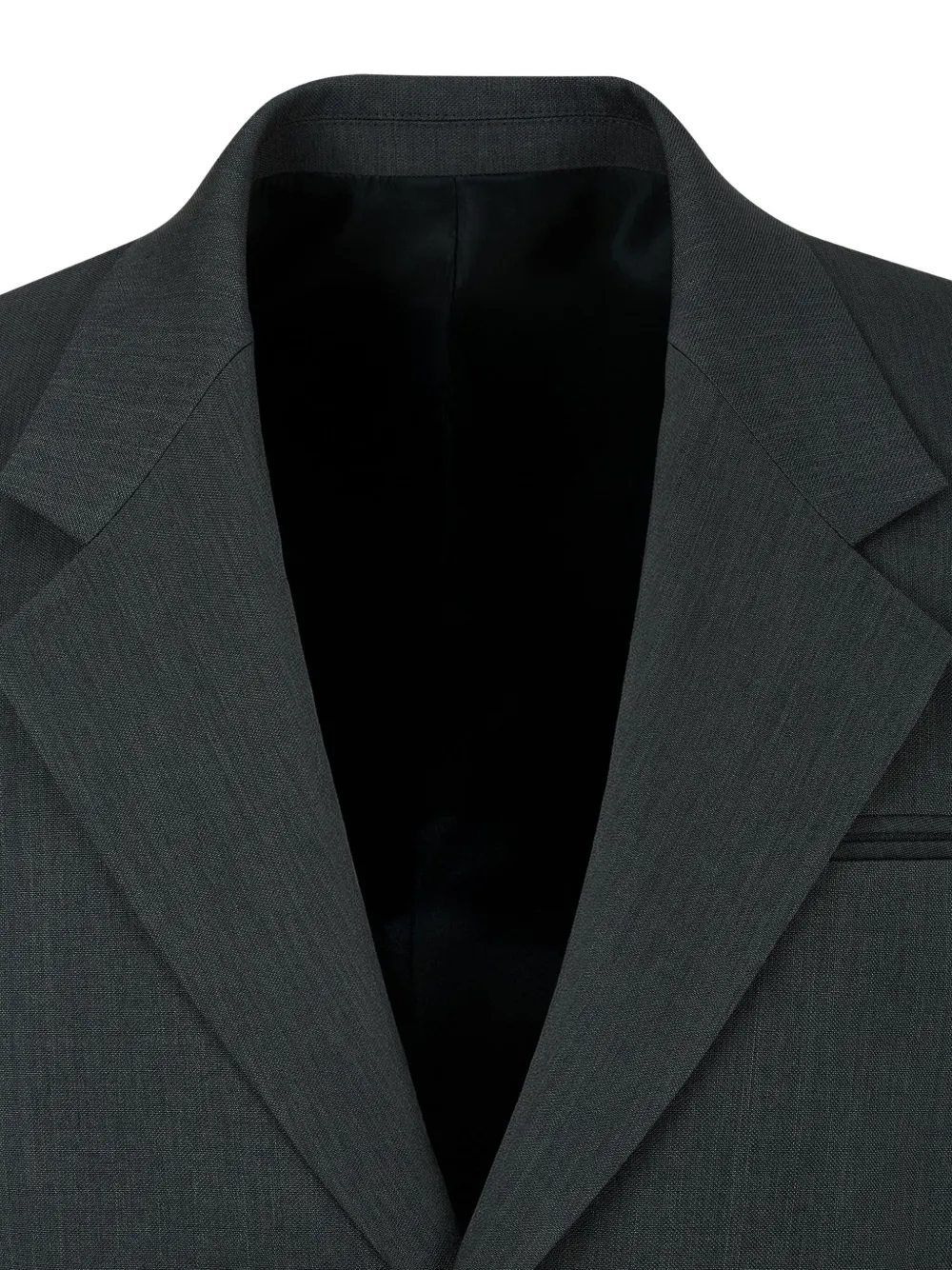 Угольно-серый однобортный пиджак с лацканами с вырезом, прорезными карманами, простое плетение
