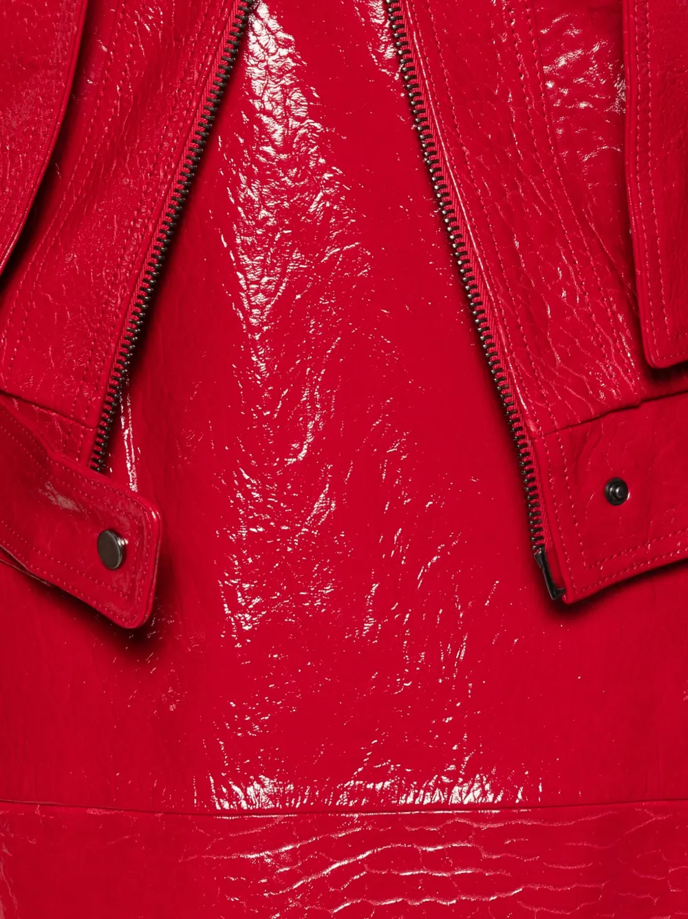 Красный кожа тисненый эффект многоуровневый дизайн скрытая застежка-молния
