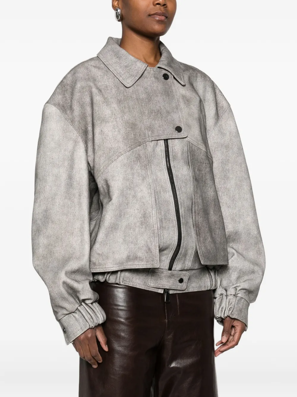Серый цвет, застежка на молнию спереди, детали с пуговицами, эластичный низ, эластичные манжеты