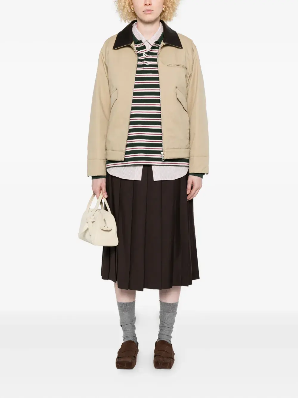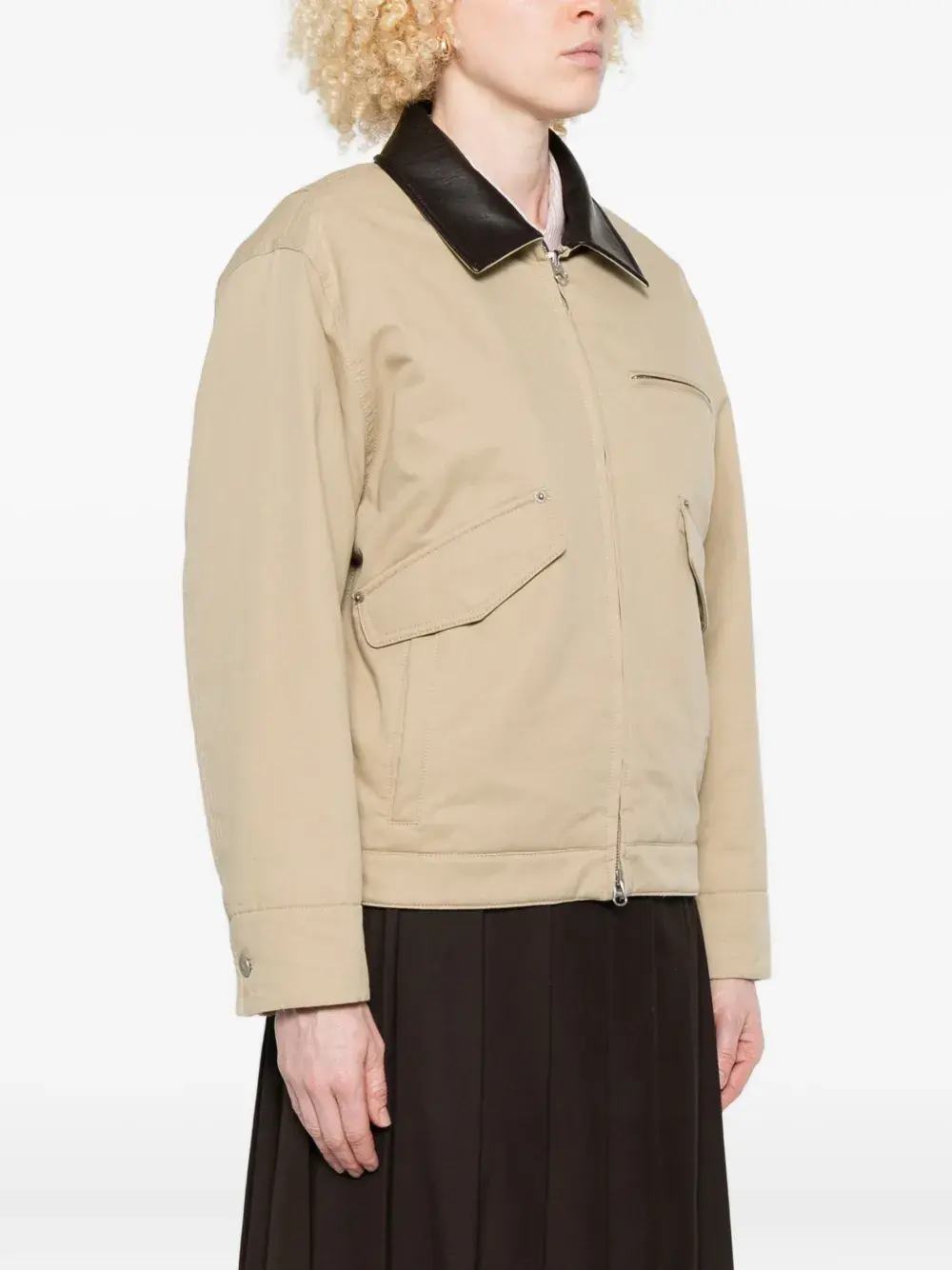 Бежевый смесь шерсти застежка-молния спереди два накладных кармана с клапанами кожаный воротник длинные рукава манжеты на пуговицах