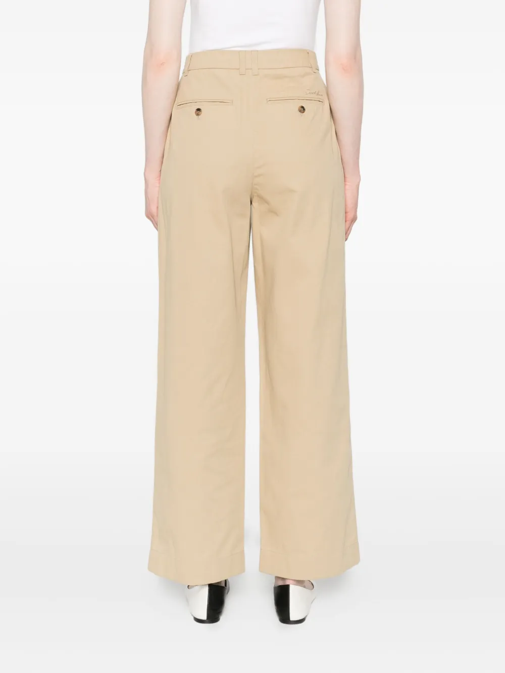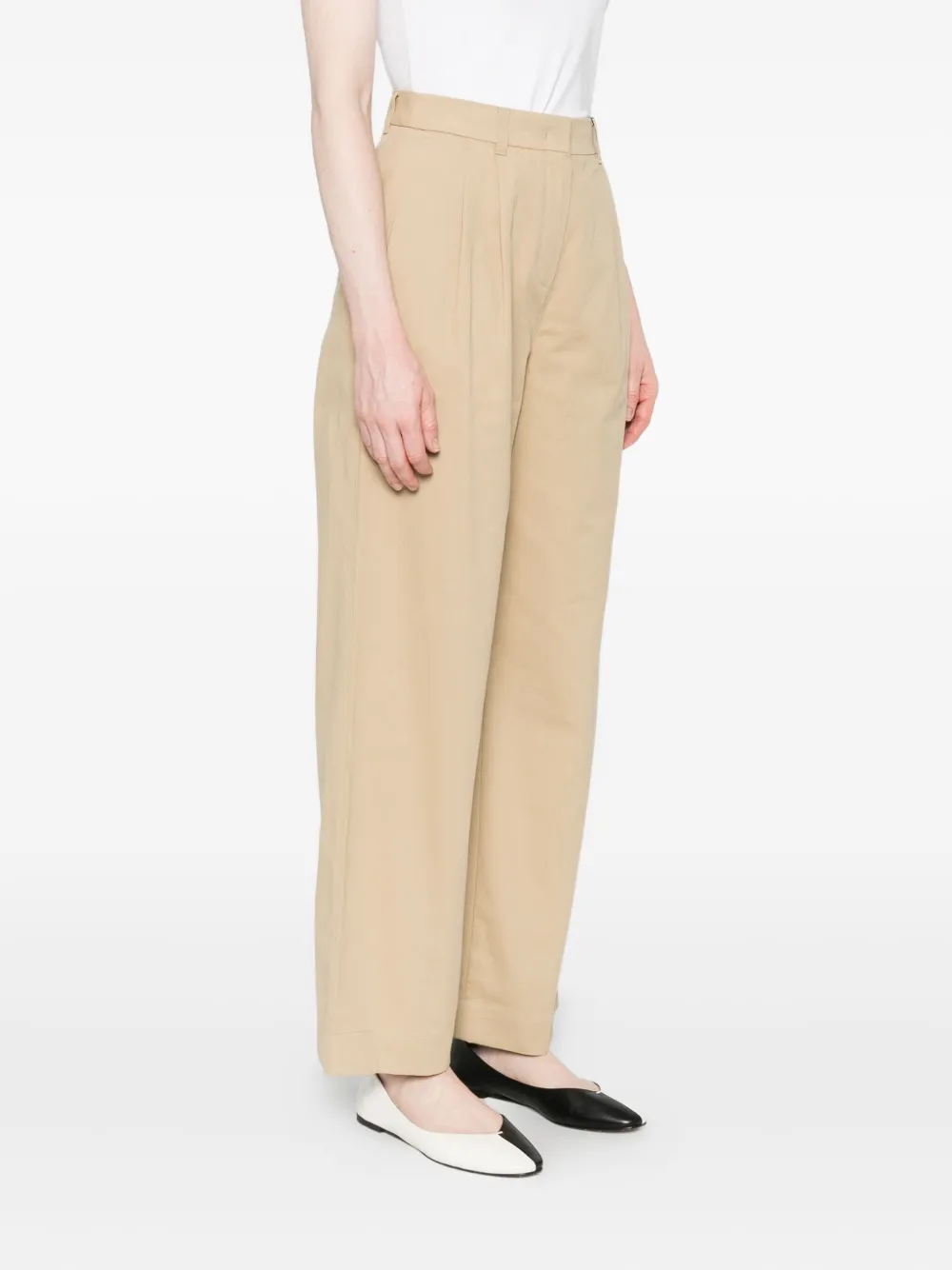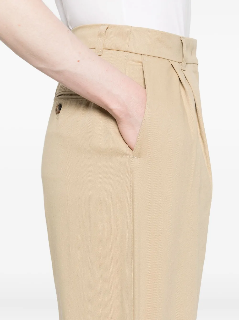 Бежевые со складками спереди прямые брючины средняя посадка боковые карманы