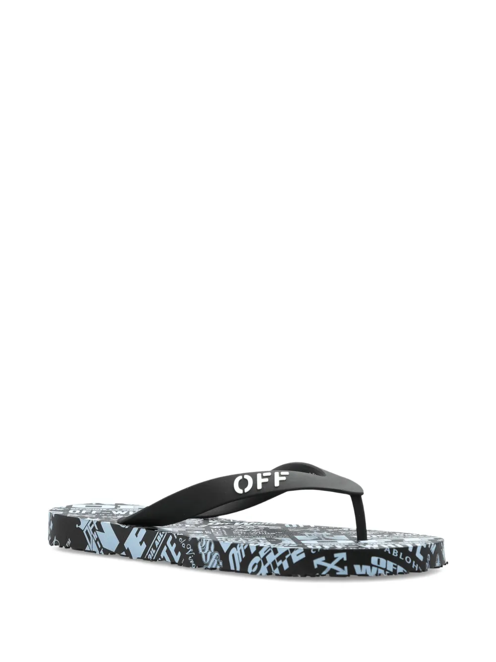 Черные вьетнамки с принтом-логотипом по всей поверхности, открытым носком, плоской подошвой и ремешком между пальцами