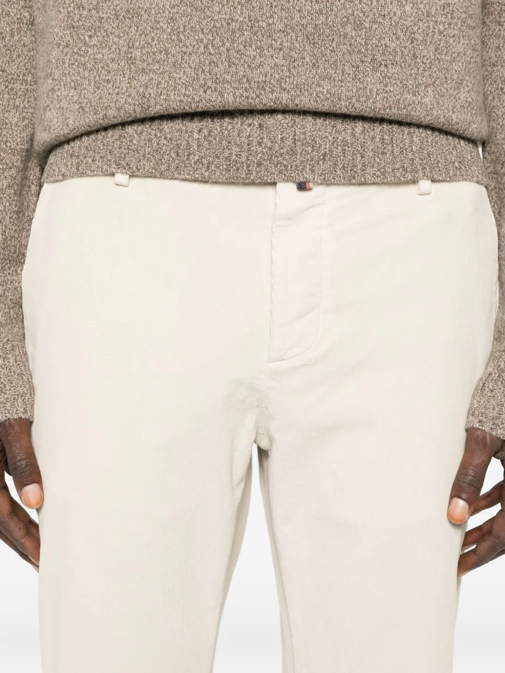 Цвет: молочно-белый боковые прорезные карманы задние прорезные карманы застежка на пуговицу и молнию спереди шлевки для ремня прямые брючины