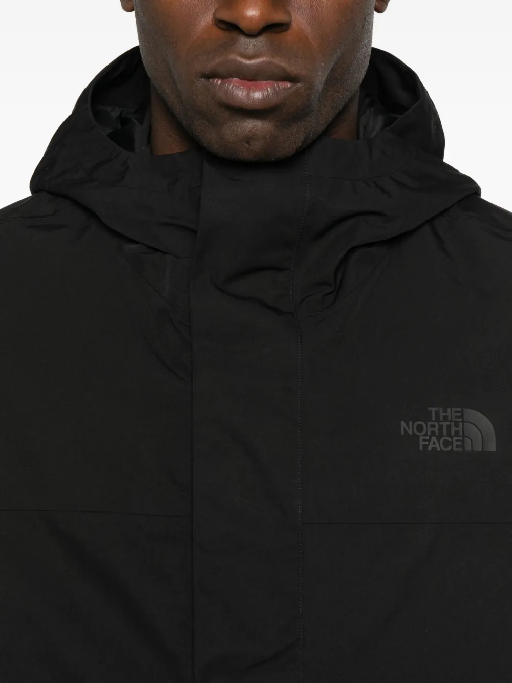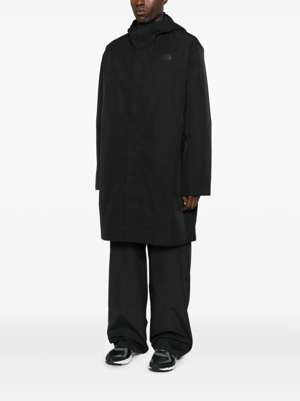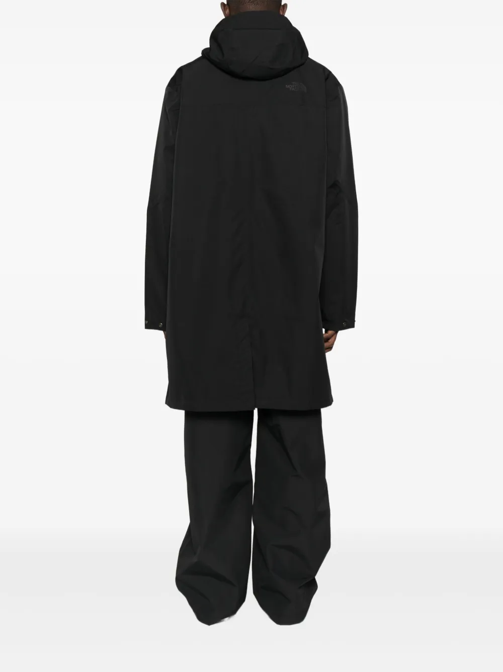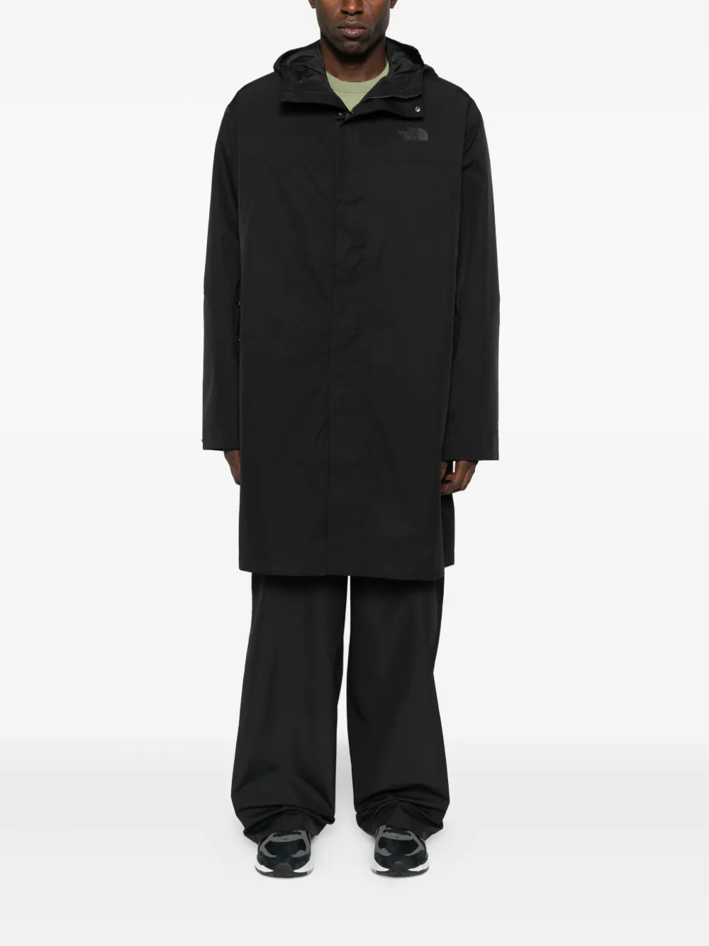 Черный капюшон длинные рукава скрытая застежка спереди прямой край