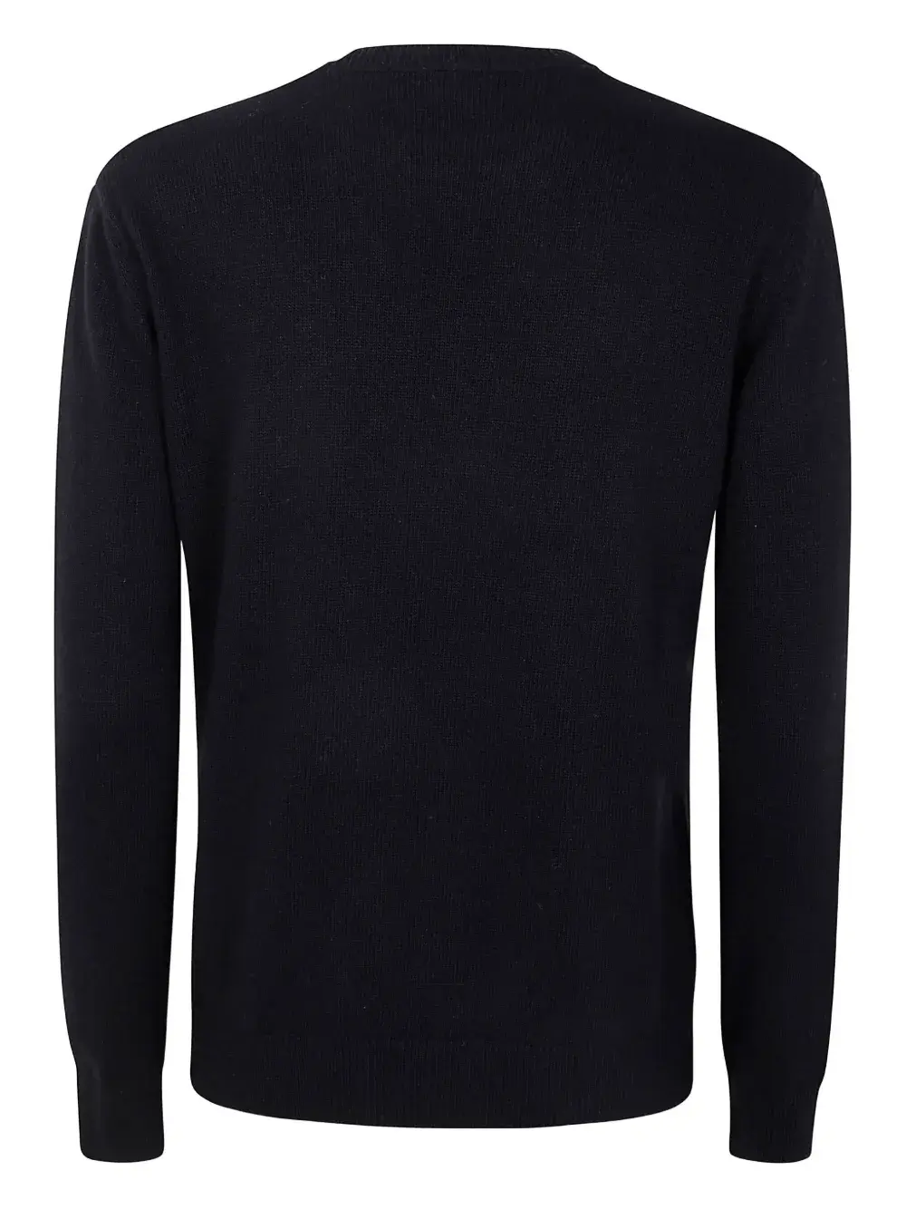 Черный вязаный свитер с логотипом, длинные рукава, круглый вырез, ребристый низ