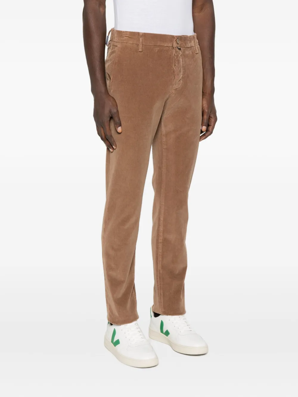 Коричневый вельвет пуговичная застежка боковые карманы прямые брючины