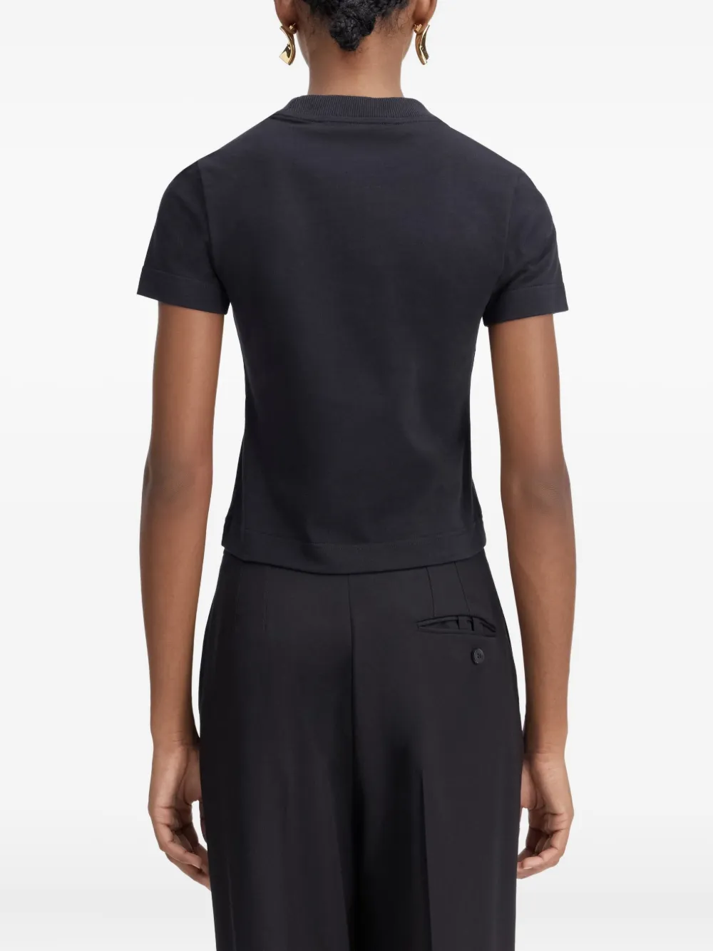 Черный короткие рукава рубчатая отделка круглый вырез нашивка с логотипом хлопок