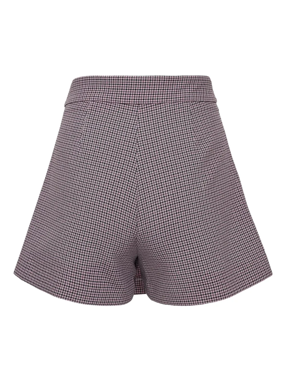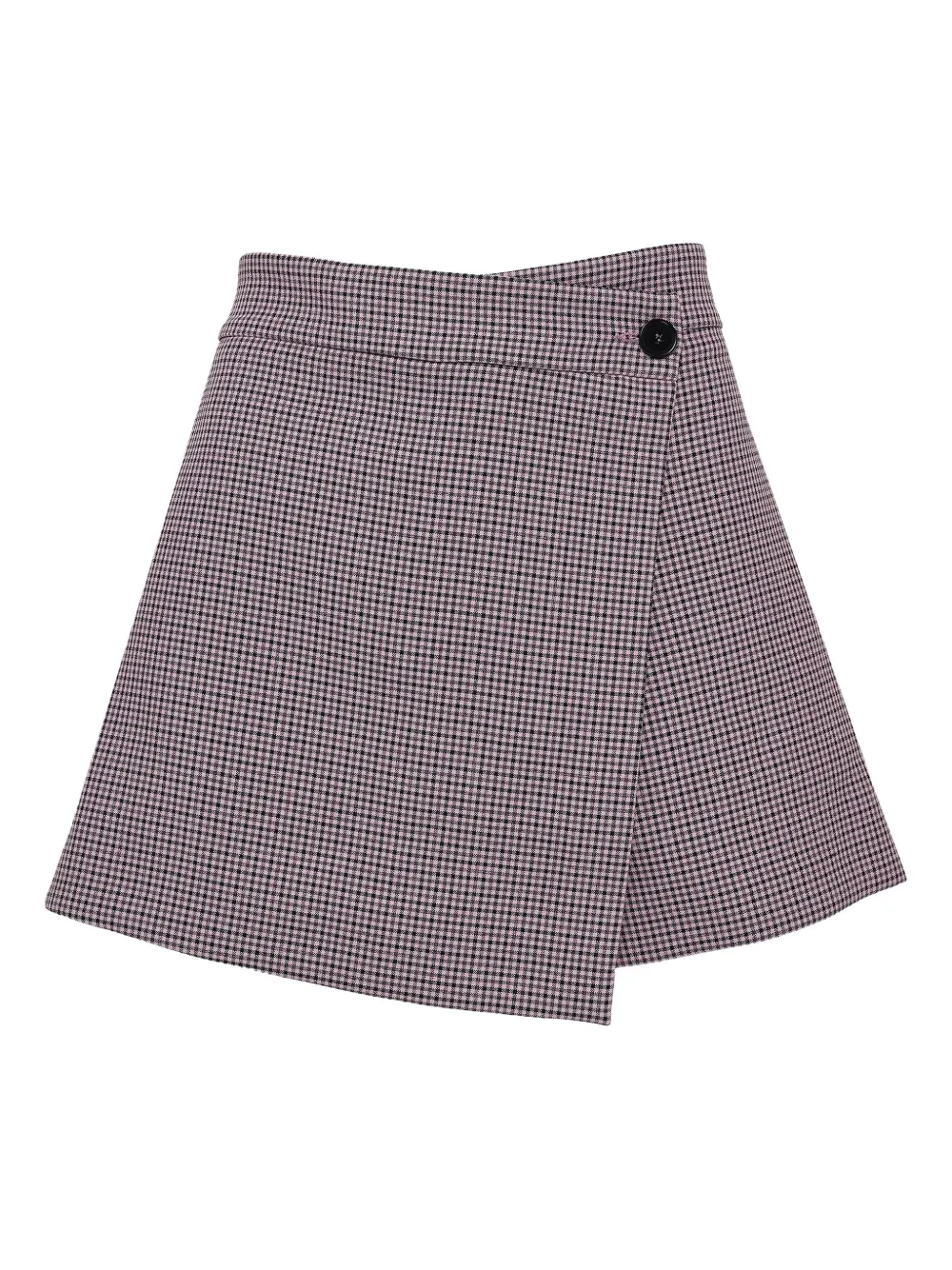 Темно-розовая клетка, застежка на пуговицы, складка сбоку