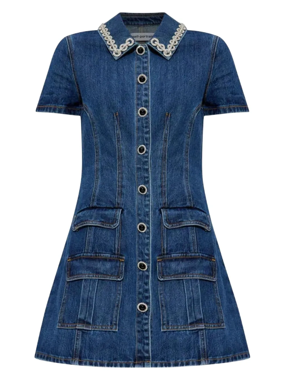 Платье с отделкой из кристаллов и карманами Self-Portrait, синий 27 183₽