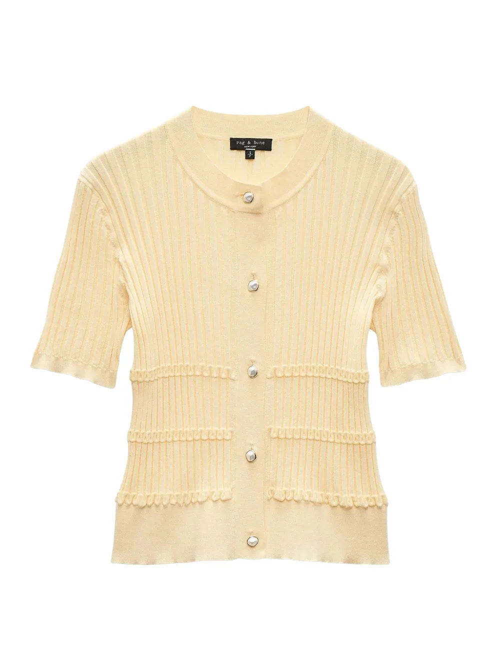 Светло-желтый рифленая текстура застежка на пуговицы спереди короткие рукава вышитые детали