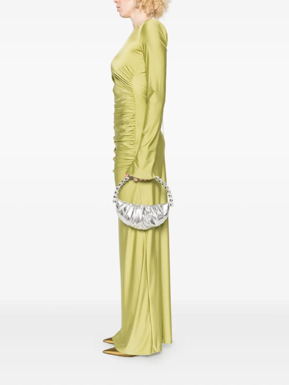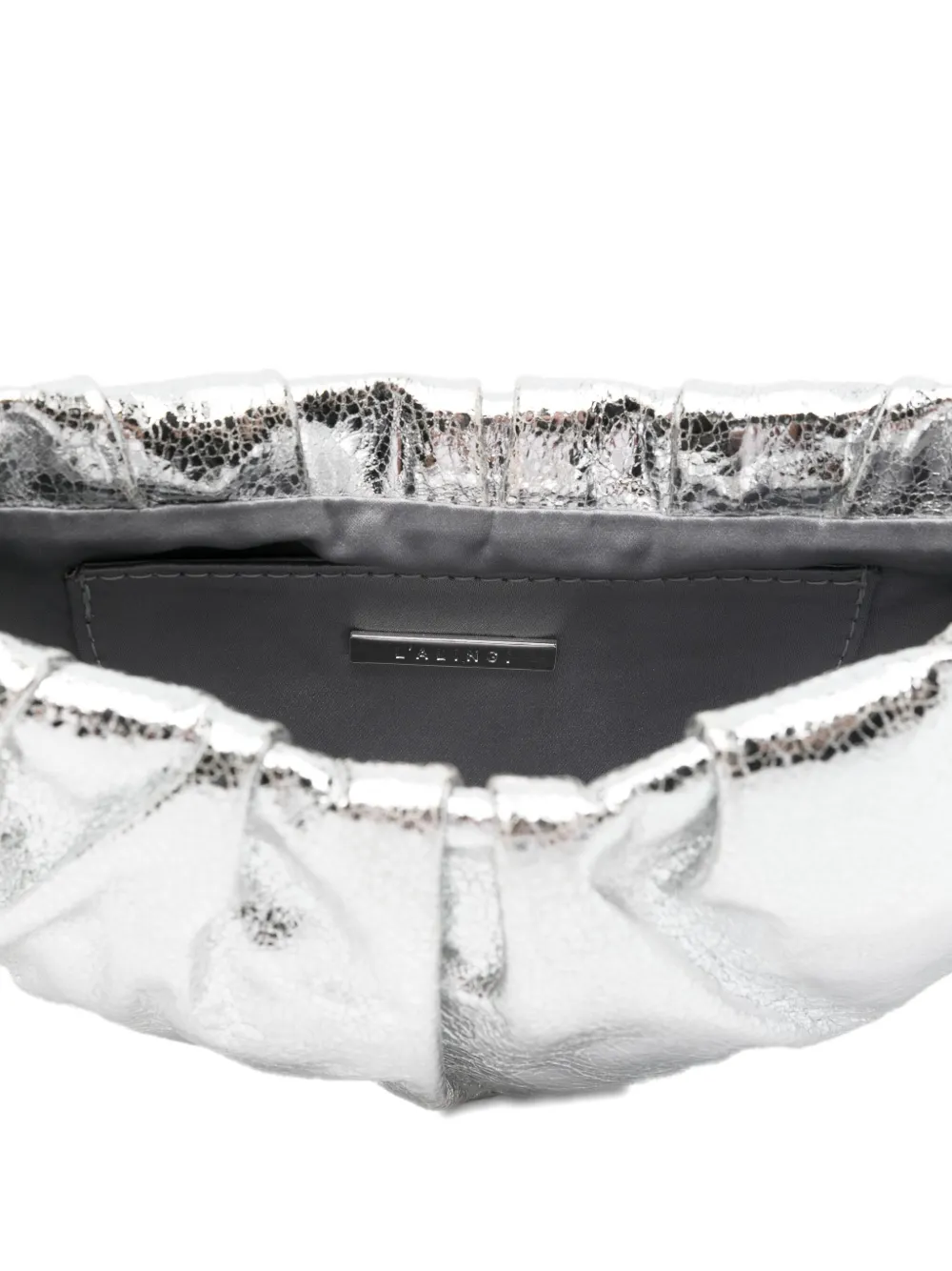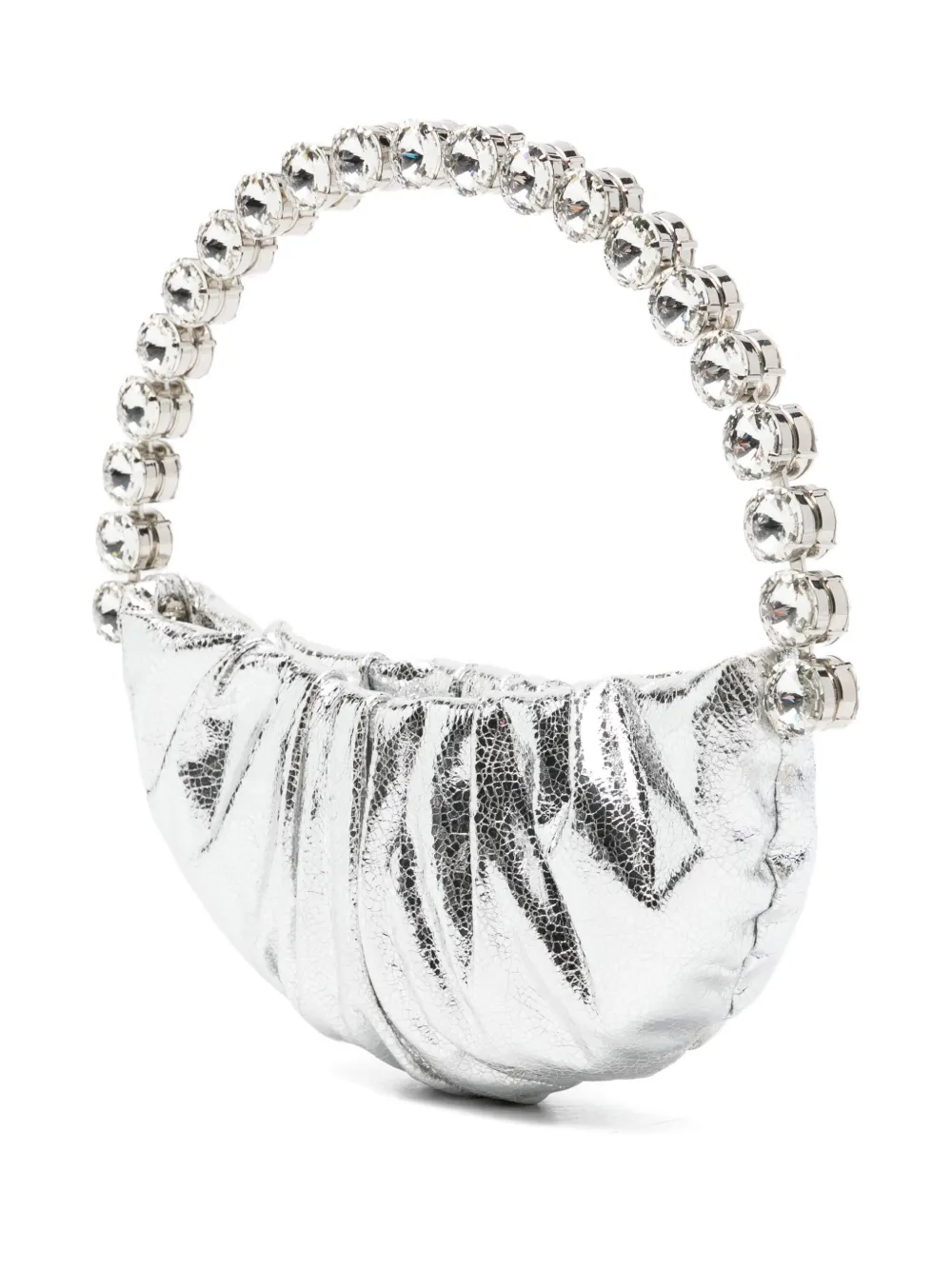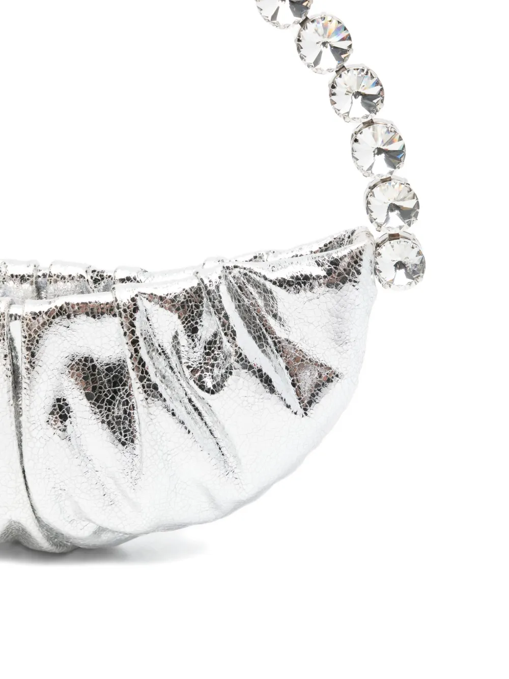 Серебристый оттенок плиссированная кожа ручка сверху, украшенная кристаллами полукруглая форма собранные детали