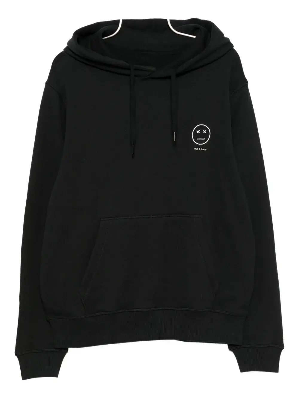 Черный карман-кенгуру спереди длинные рукава тонкая резинка на манжетах и по нижнему краю