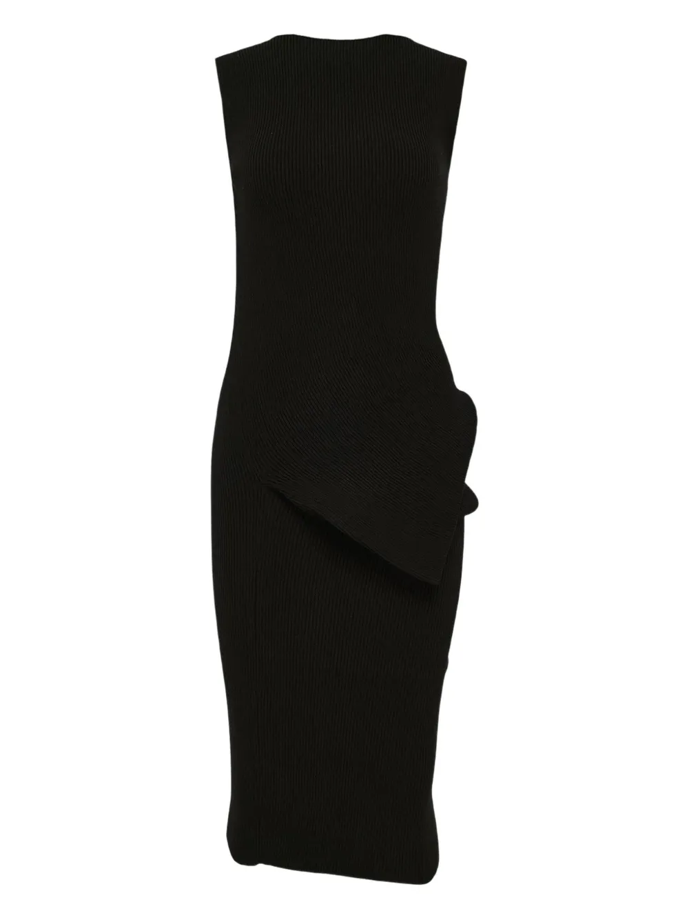 Черный вязаный в рубчик драпировка без рукавов длина миди