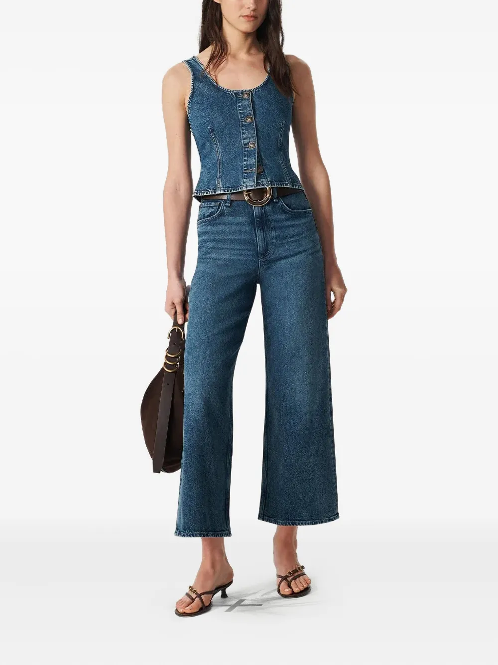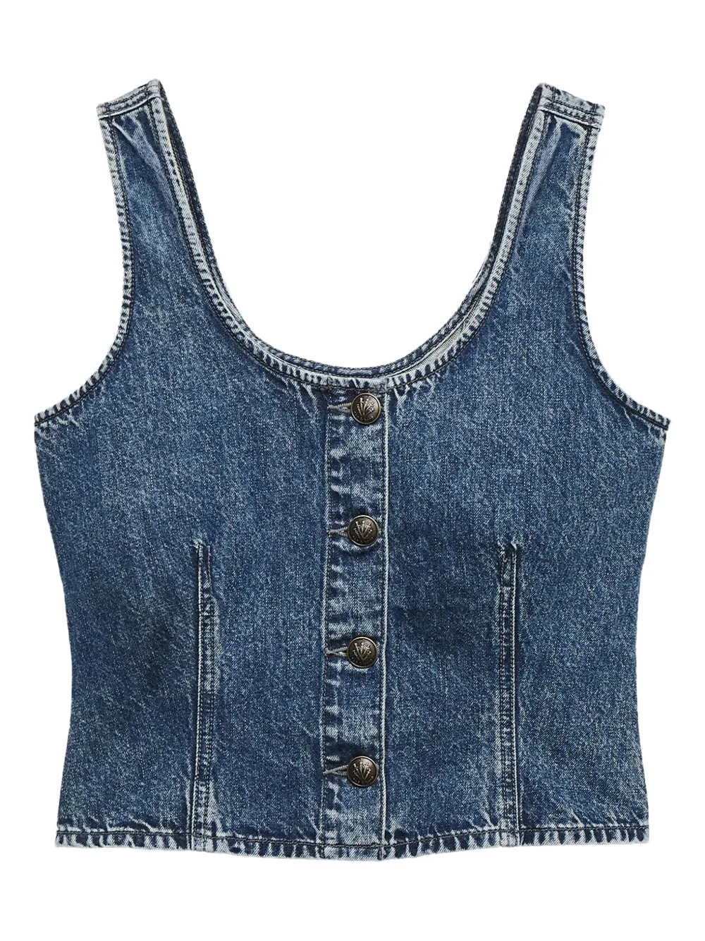 Синий деним без рукавов круглый вырез застежка на пуговицы спереди