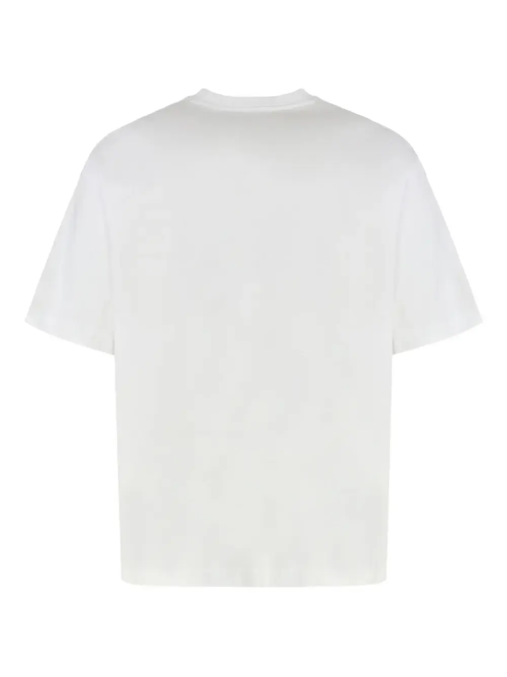 Белый смесь хлопка принт-логотип на груди прямой низ короткие рукава круглый вырез