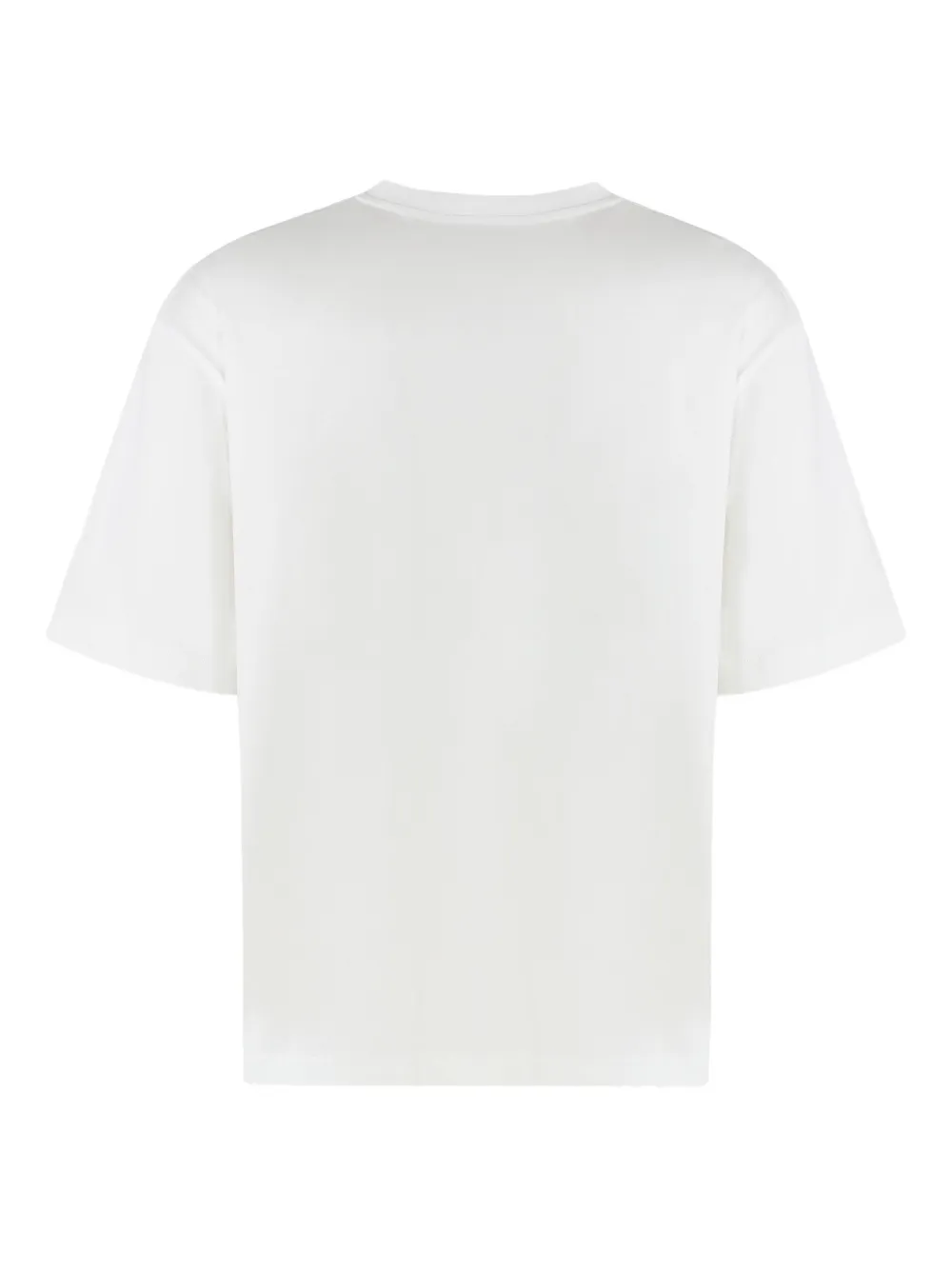 Белый хлопок круглый вырез короткие рукава прямой подол логотип на груди