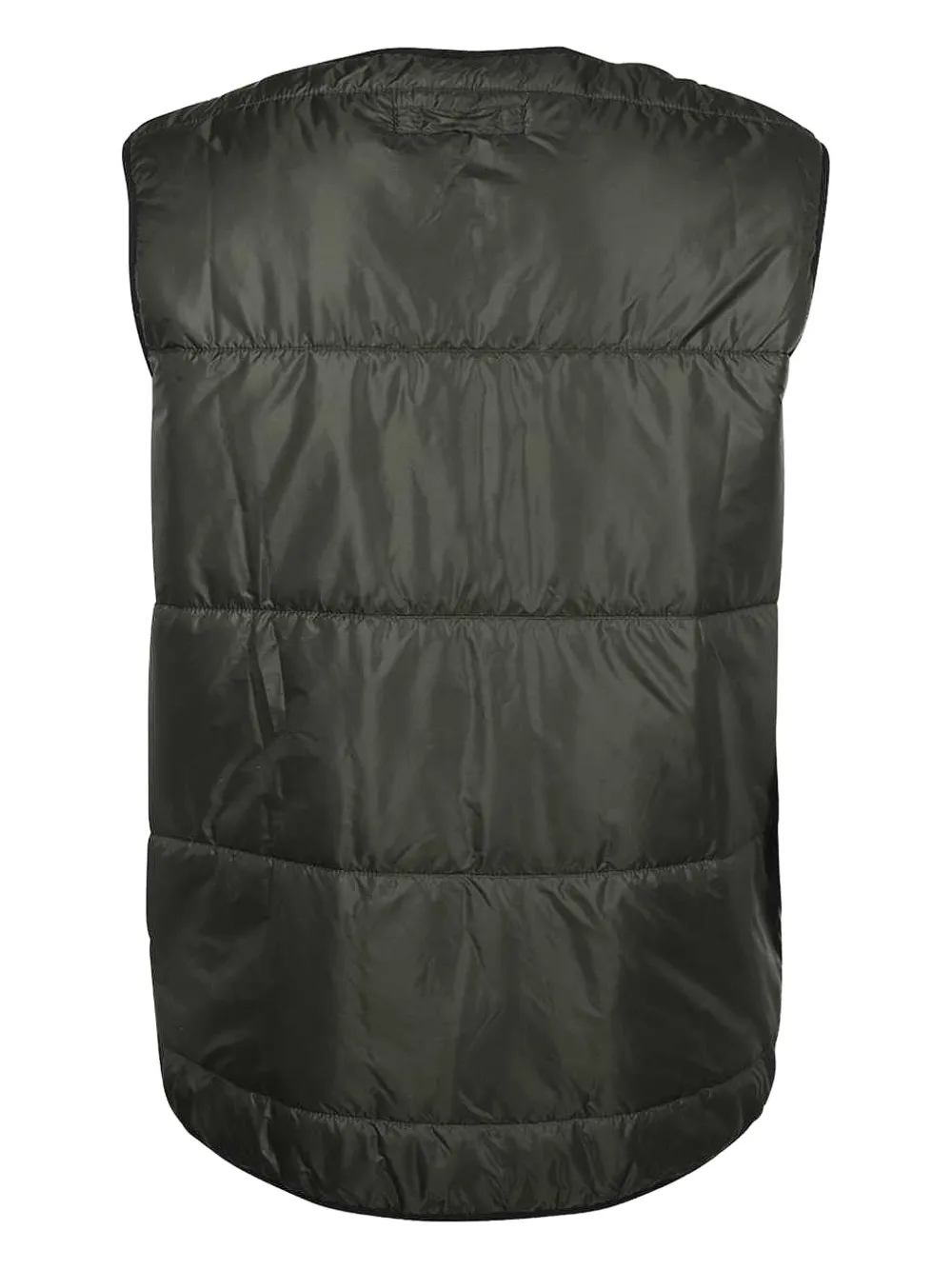 Темно-зеленый стеганый дизайн, застежка-молния спереди, два прорезных кармана, без рукавов, нашивка с логотипом