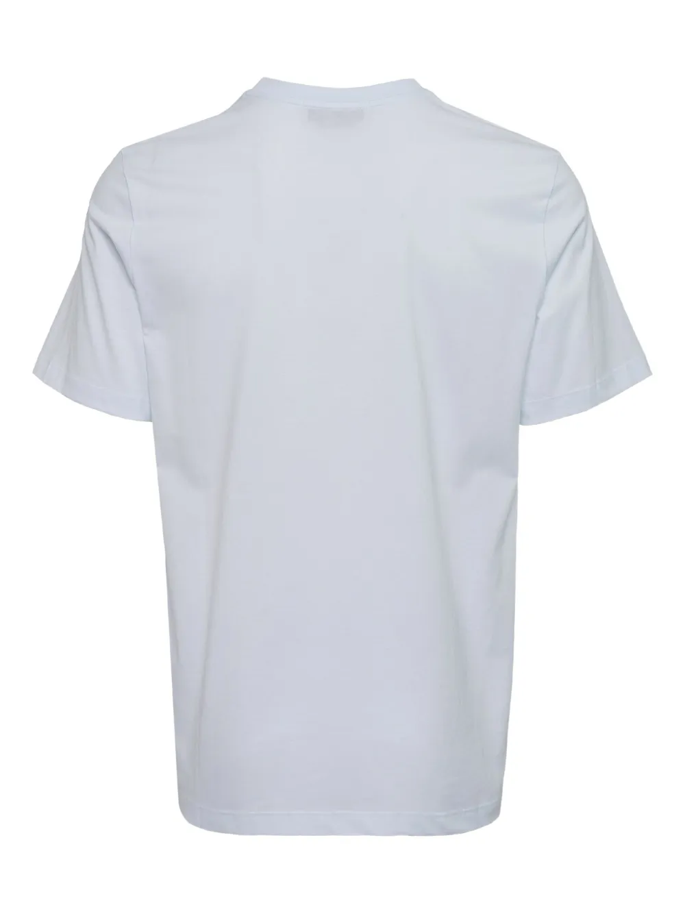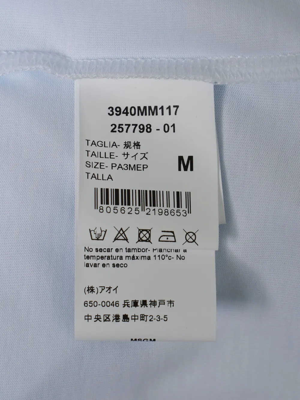 Белая футболка с короткими рукавами, круглым вырезом и прямым низом