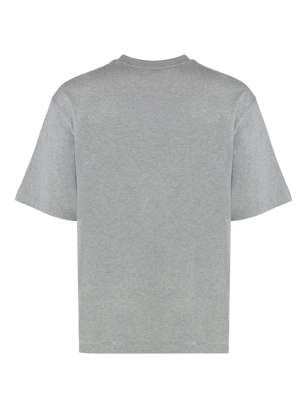 Серый хлопковый материал круглый вырез короткие рукава логотип на груди прямой край