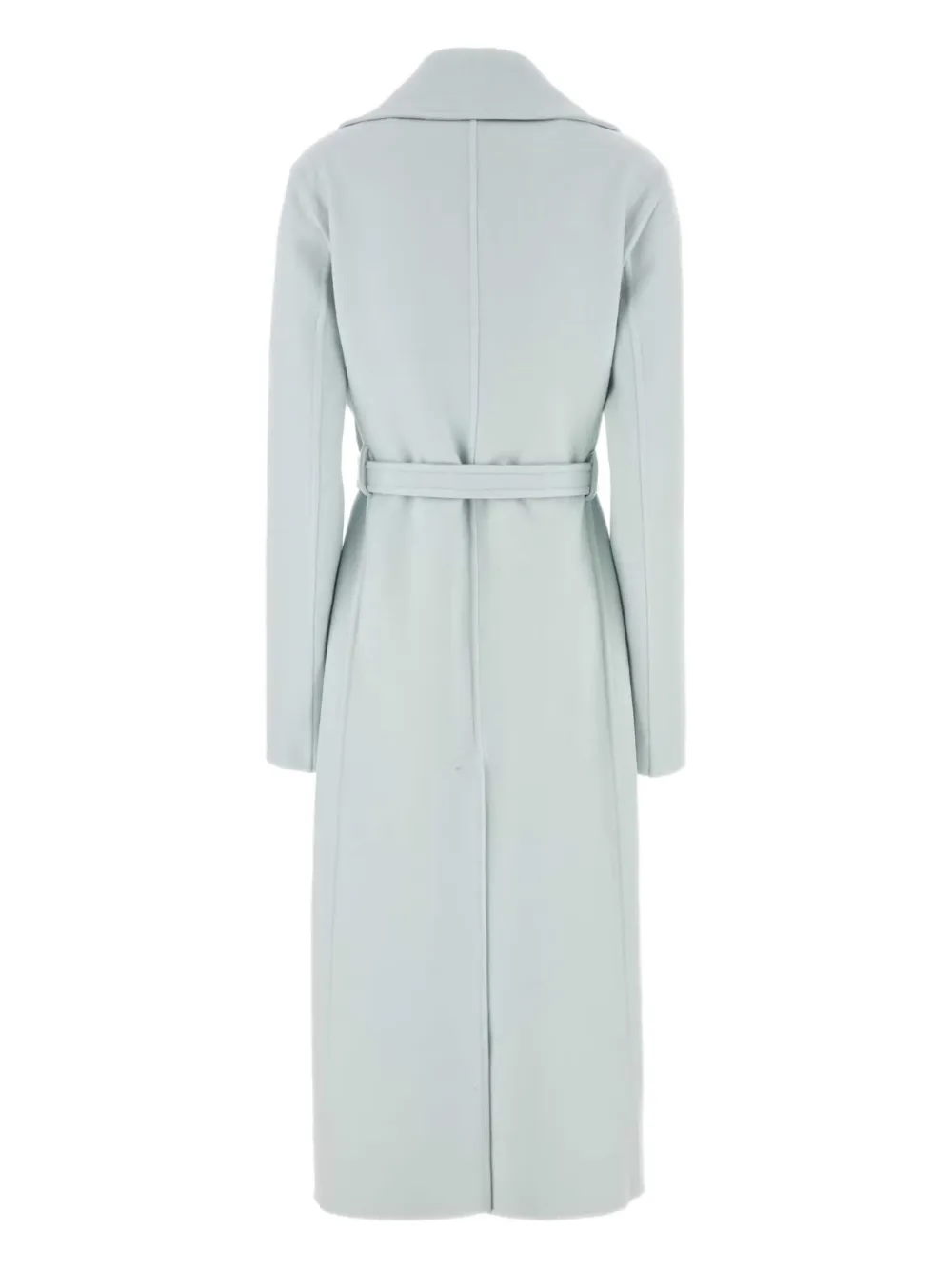 Ледяного-голубого цвета, кашемир, отложные лацканы, пояс на талии, длинные рукава, скрытая застежка