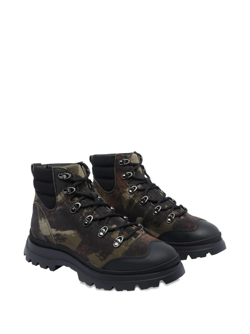 Зеленый камуфляжный узор застежка на шнуровке спереди уплотненный задник резиновая подошва фирменная стелька