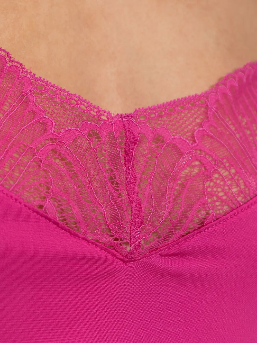 Ярко-розовый (фуксия) V-образный вырез, кружевная отделка, регулируемые бретели, без рукавов