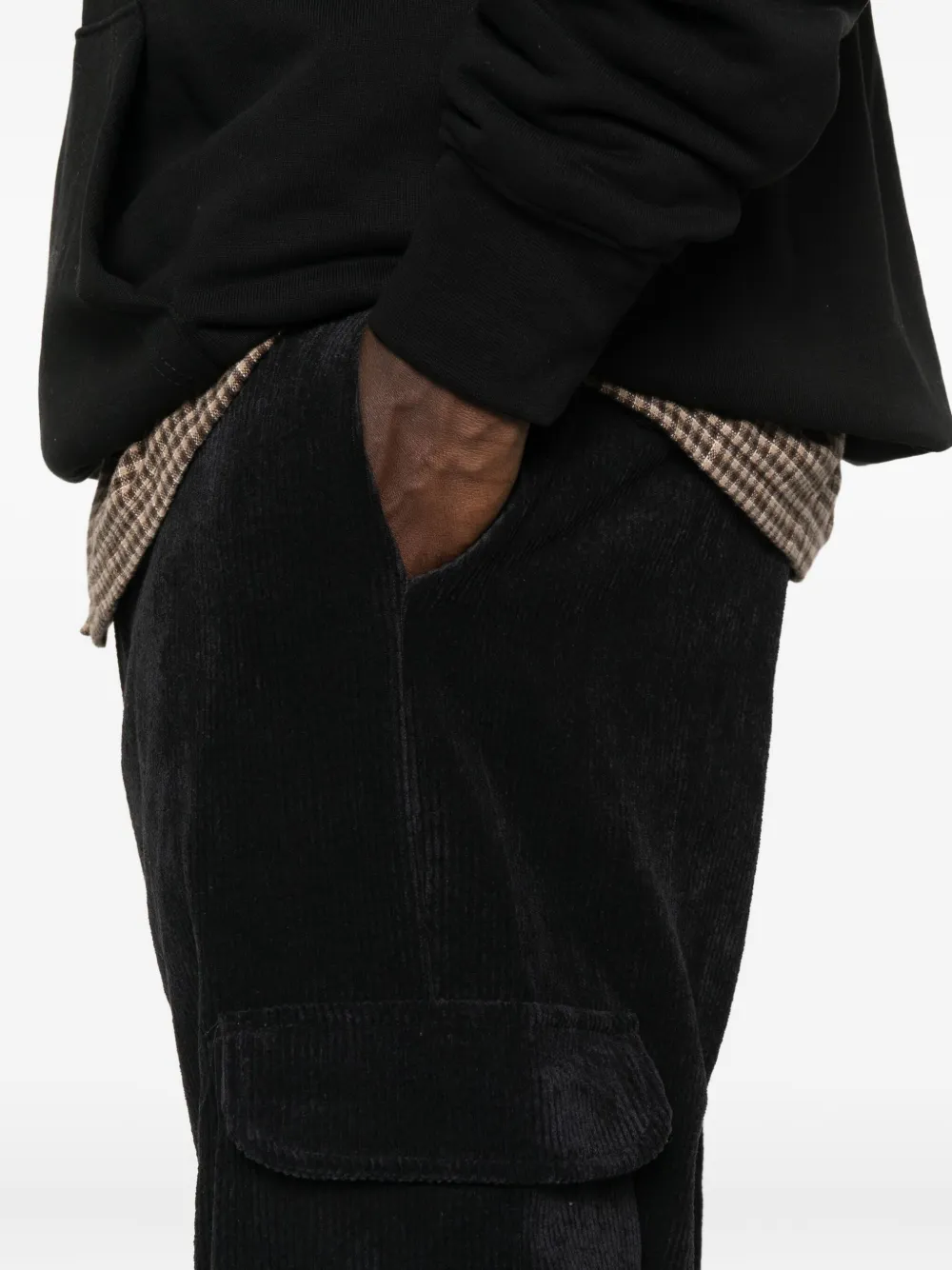 Черный вельветовая текстура накладной карман деталь с D-образным кольцом застежка на пуговицу и молнию прямые брючины