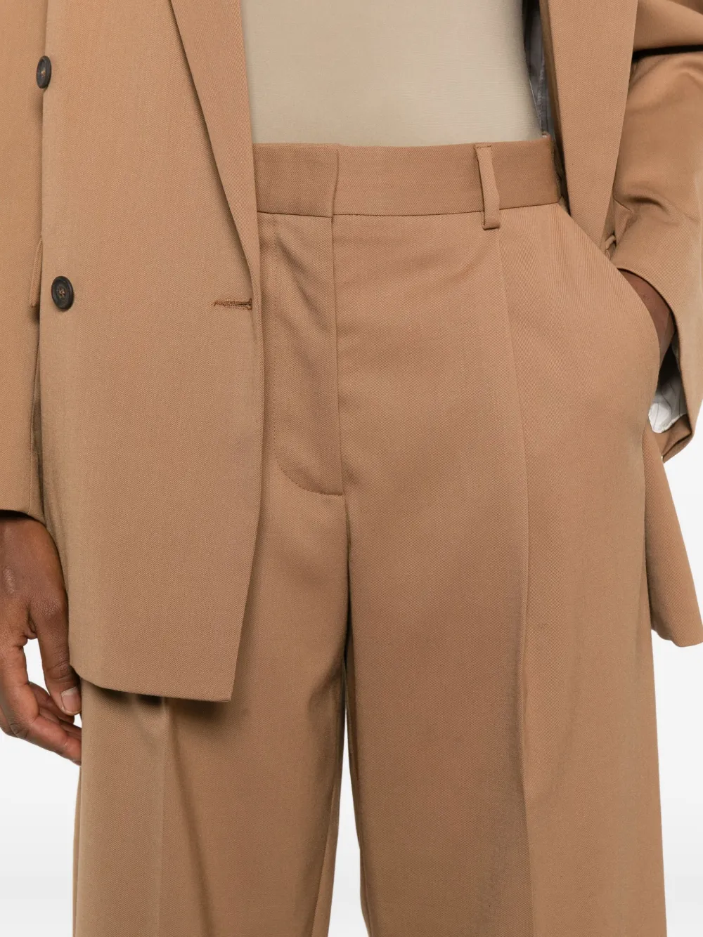 Коричневый со складками спереди прямые брючины средняя посадка потайная молния боковые карманы