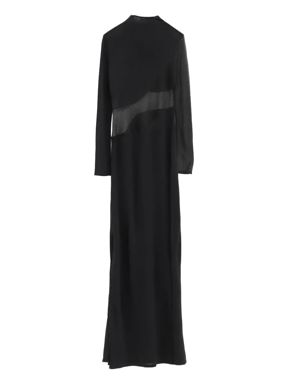 Черный длинные рукава круглый вырез изогнутая вставка из сетки макси-длина