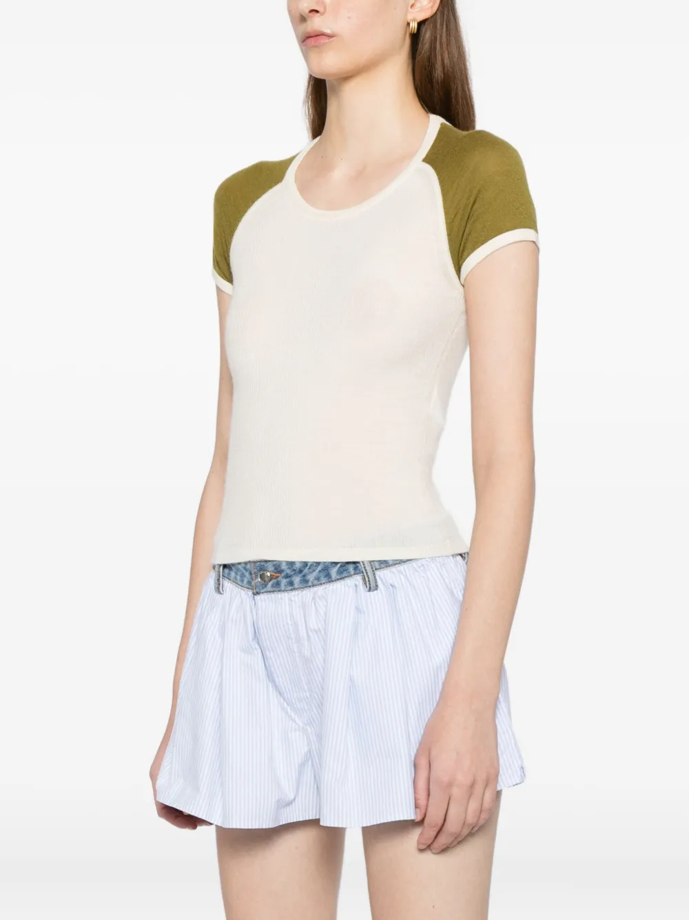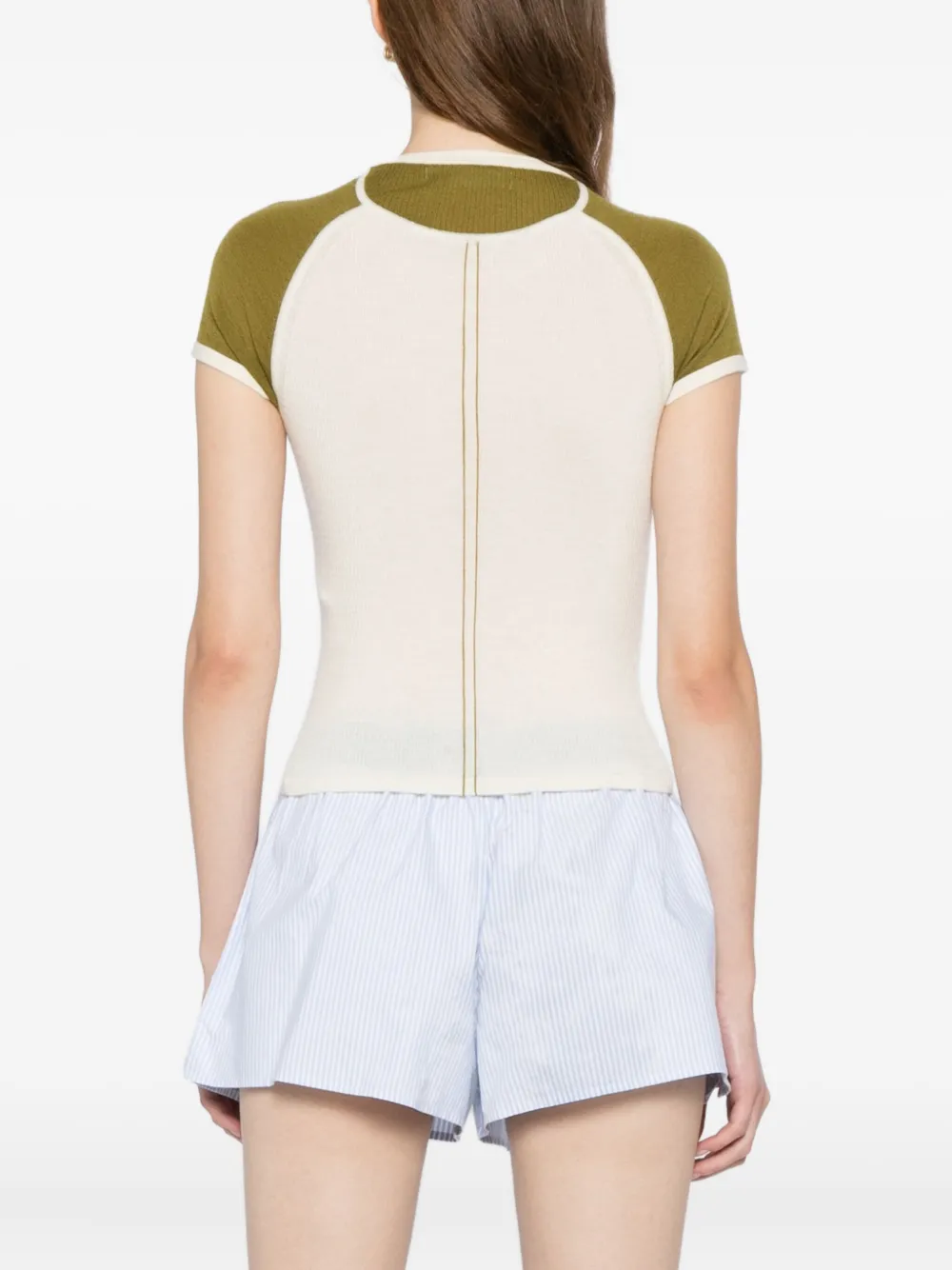 Хаки зеленый короткие рукава круглый вырез