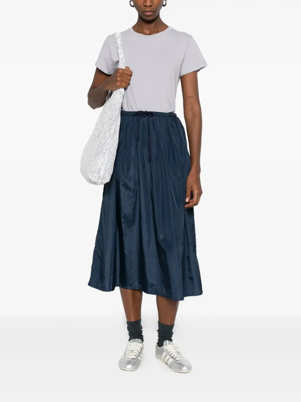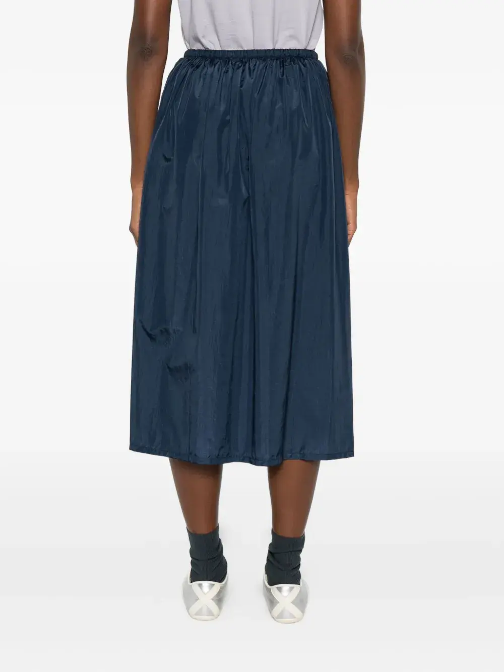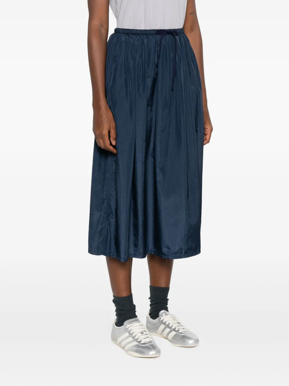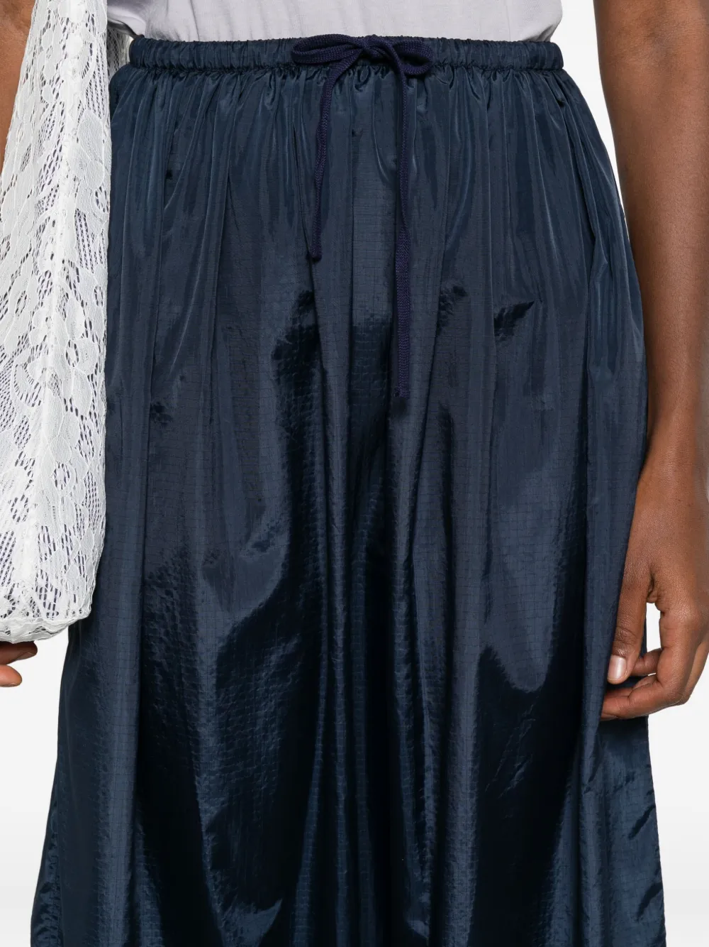 Темно-синяя юбка А-силуэта с завязкой на талии и прямым подолом