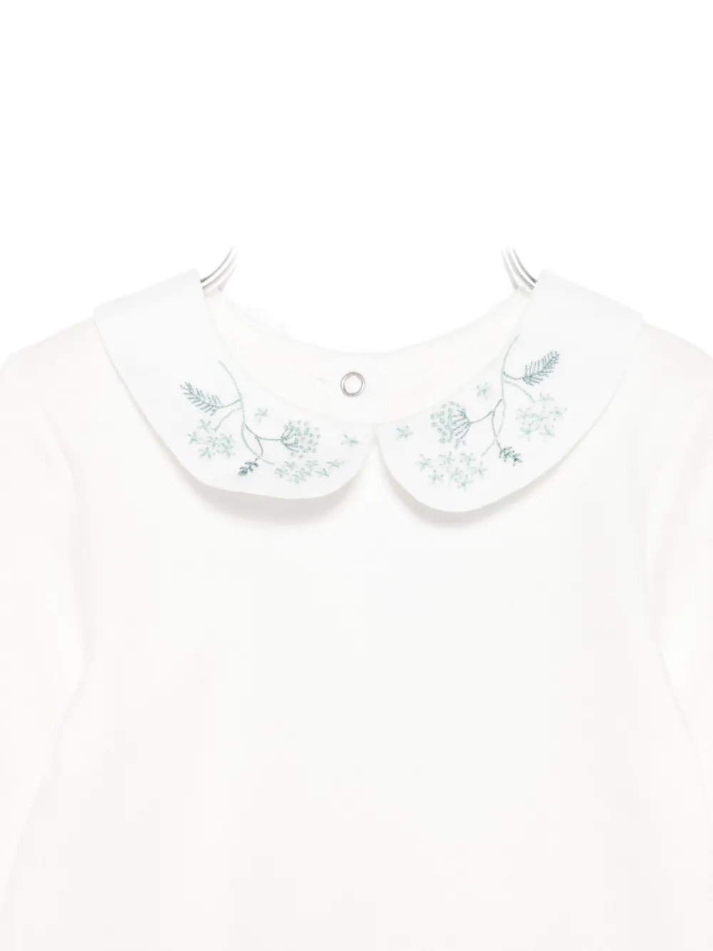 Белый воротник «Питер Пэн», цветочная вышивка, длинные рукава, застежка на кнопки, пышные рукава