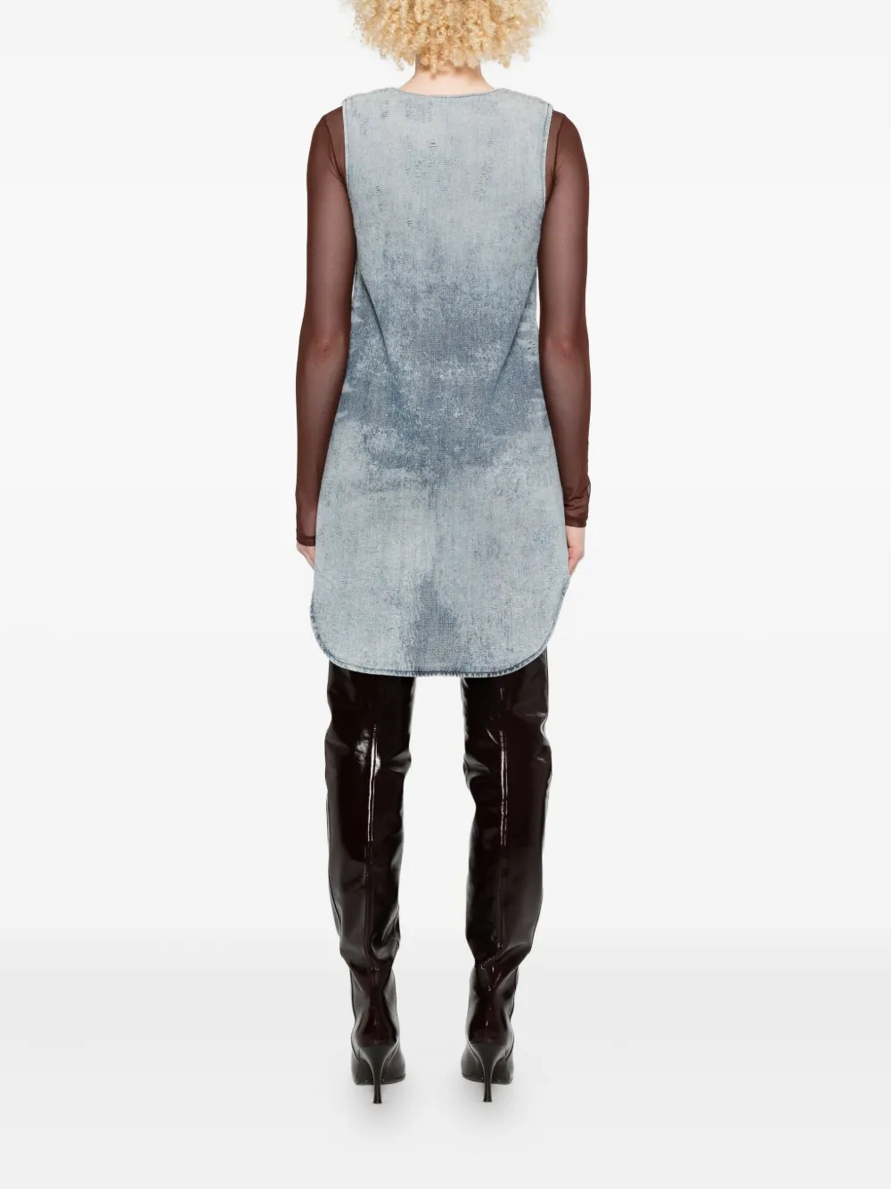 Светло-голубой топ с эффектом кислотной стирки, V-образным вырезом, без рукавов и закругленным подолом