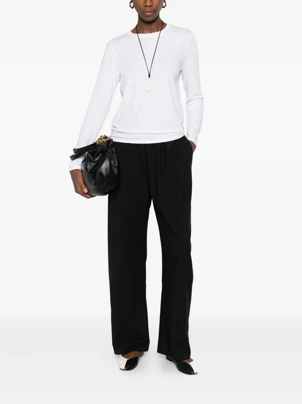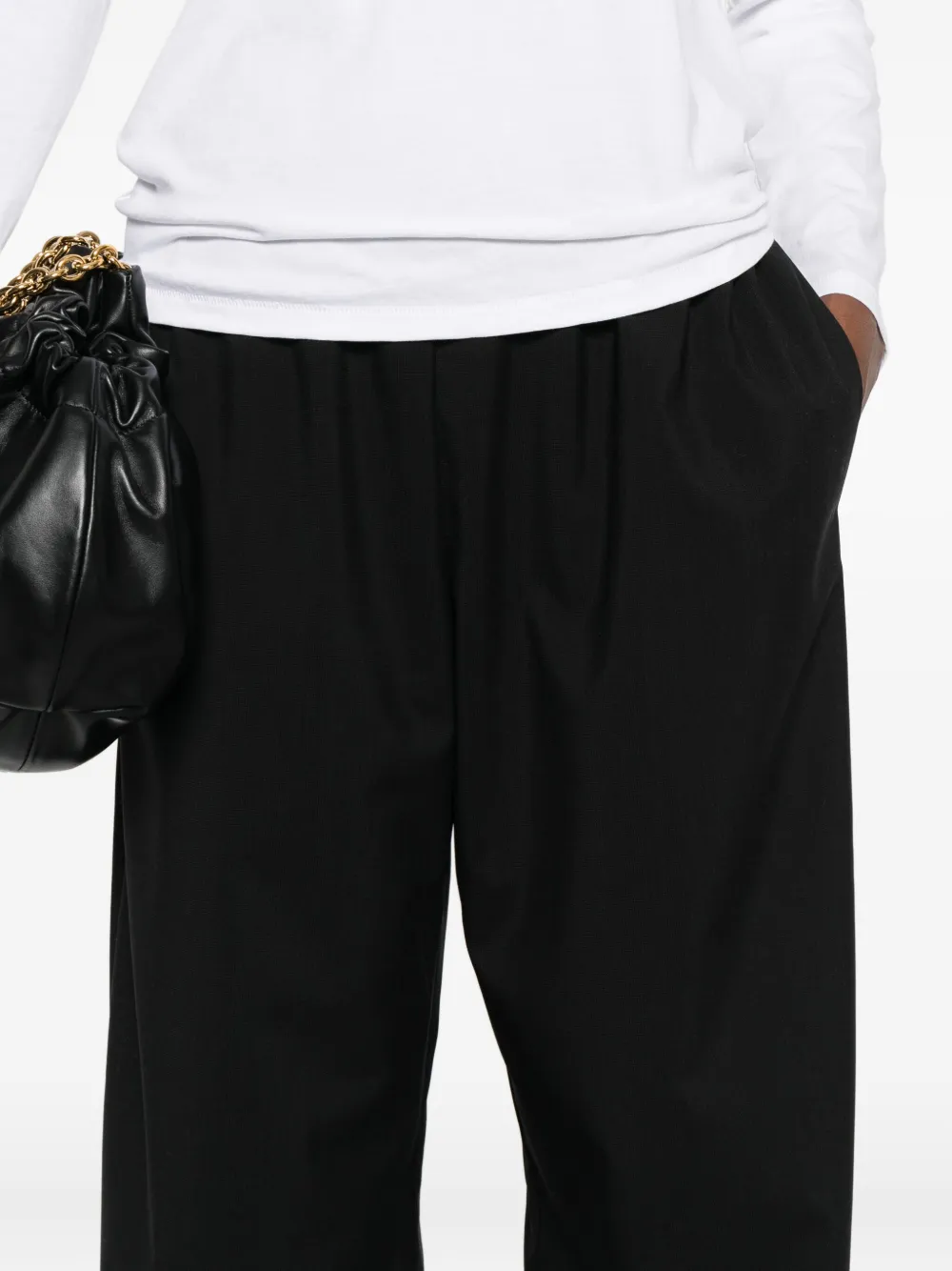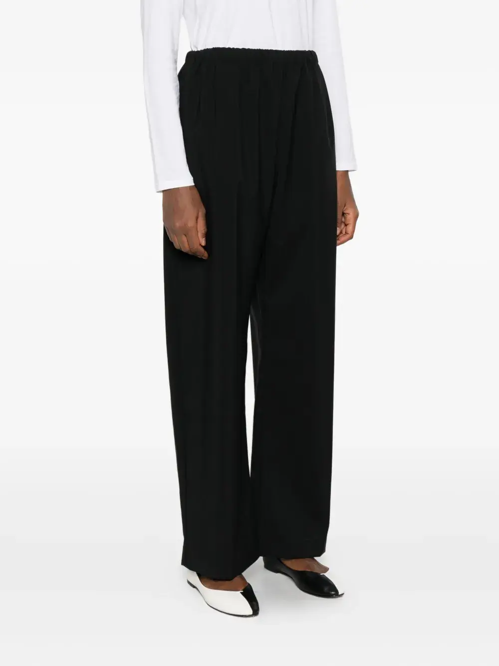 Черные прямые брюки из шерсти с эластичным поясом