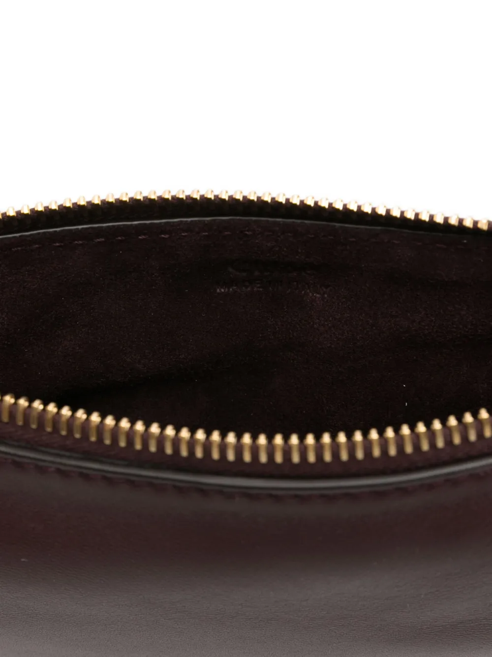Винно-красная кожаная сумка с плечевым ремнем-цепочкой и верхней застежкой на молнии