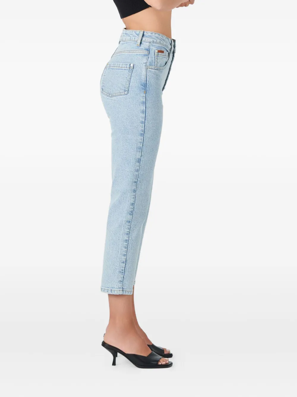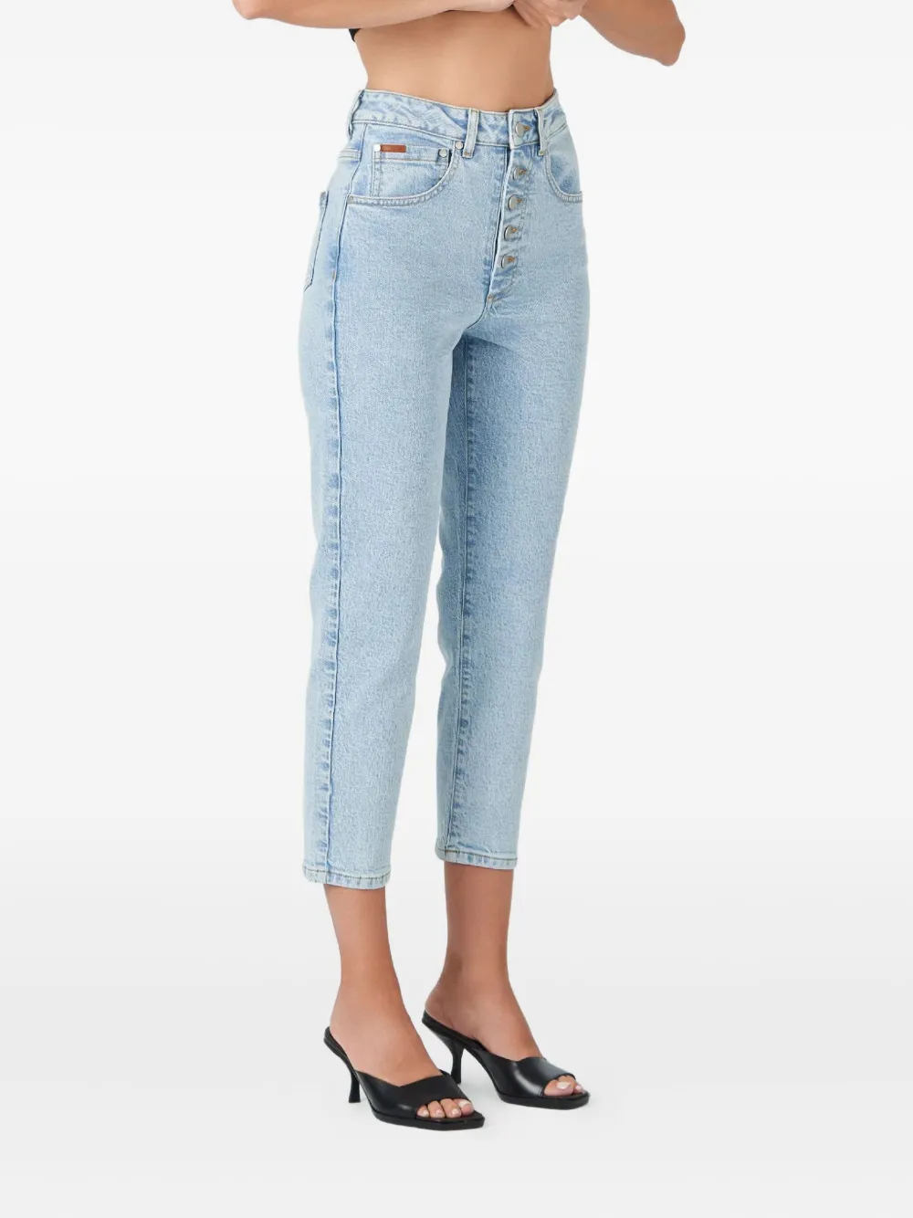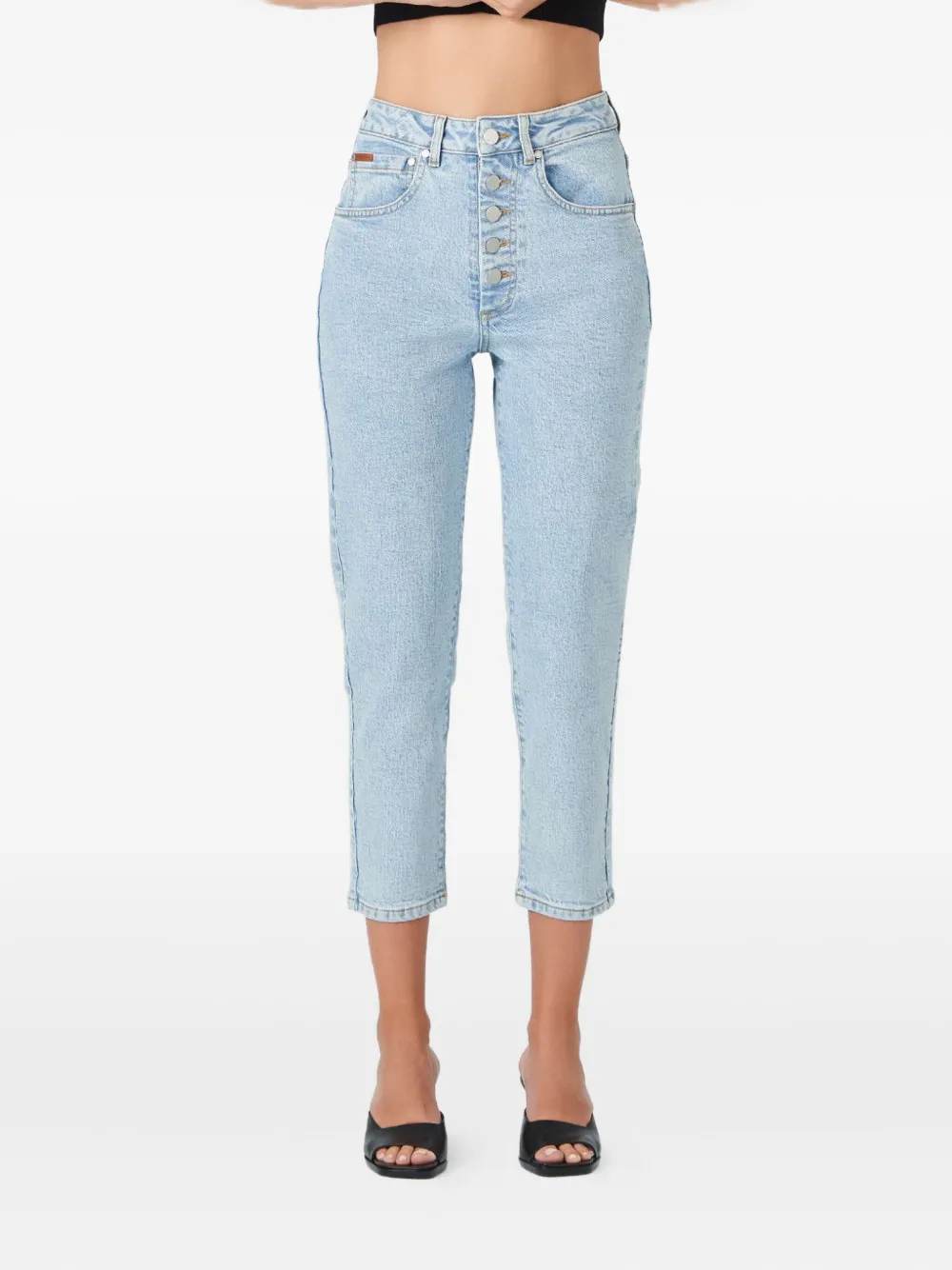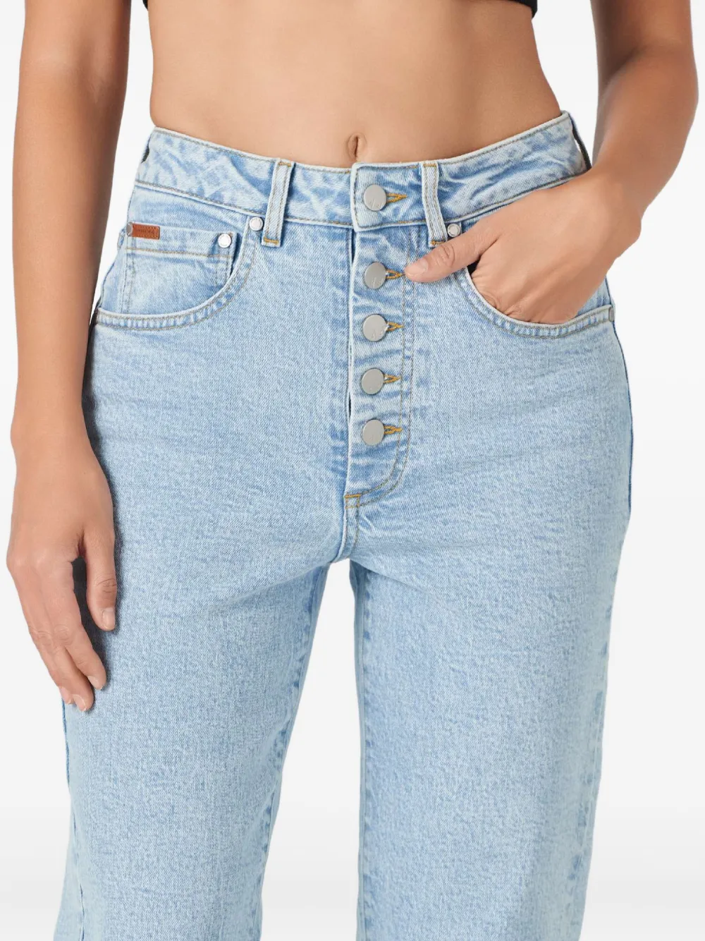 Светло-голубые высокая талия застежка на пуговицах пять карманов прямые брючины