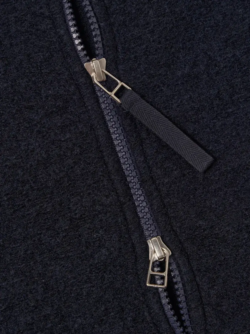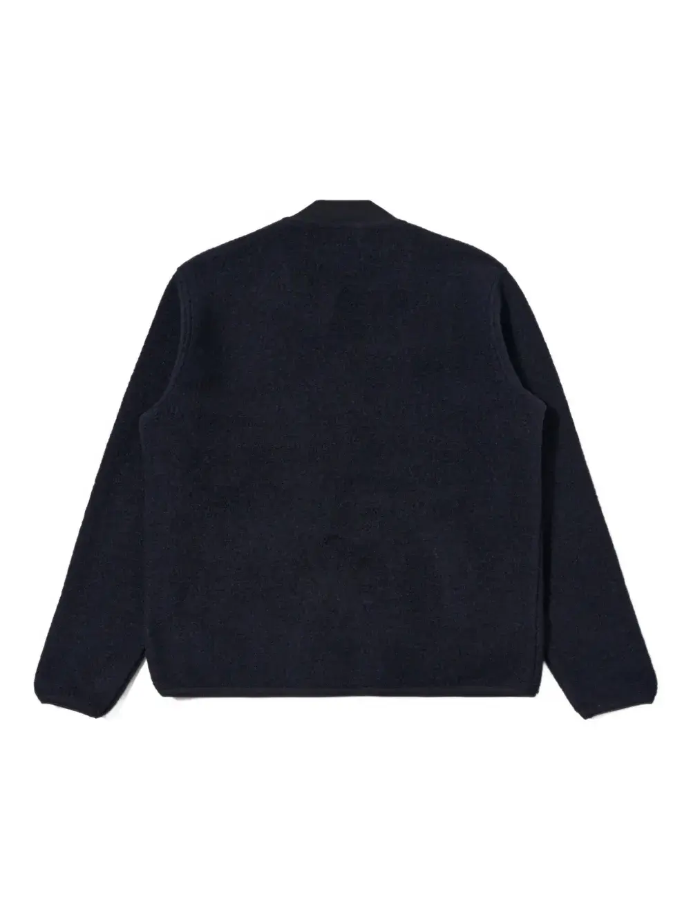 Темно-синий флисовая текстура застежка-молния манжеты в рубчик прорезные карманы бейзбольный воротник