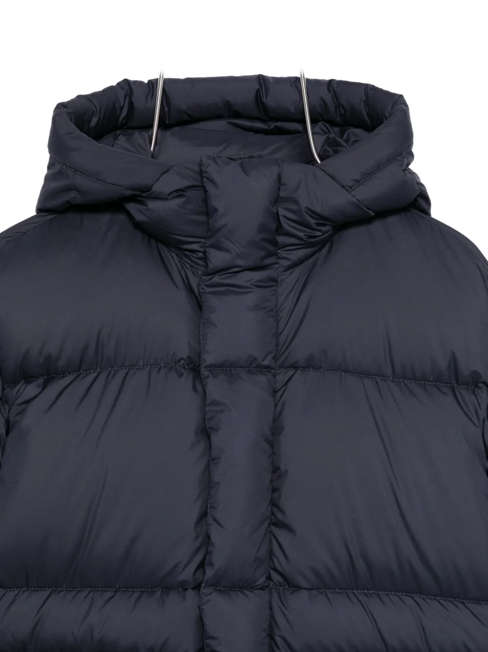 Темно-синий классический капюшон накладные передние карманы длинные рукава стеганый дизайн пуховый/утепленный