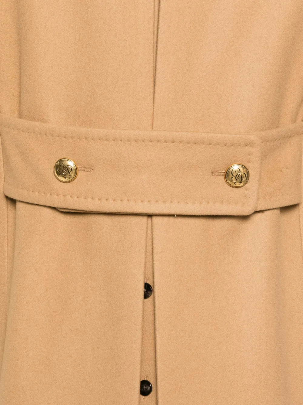 Верблюжий коричневый двубортная застежка длинные рукава боковые карманы с клапанами