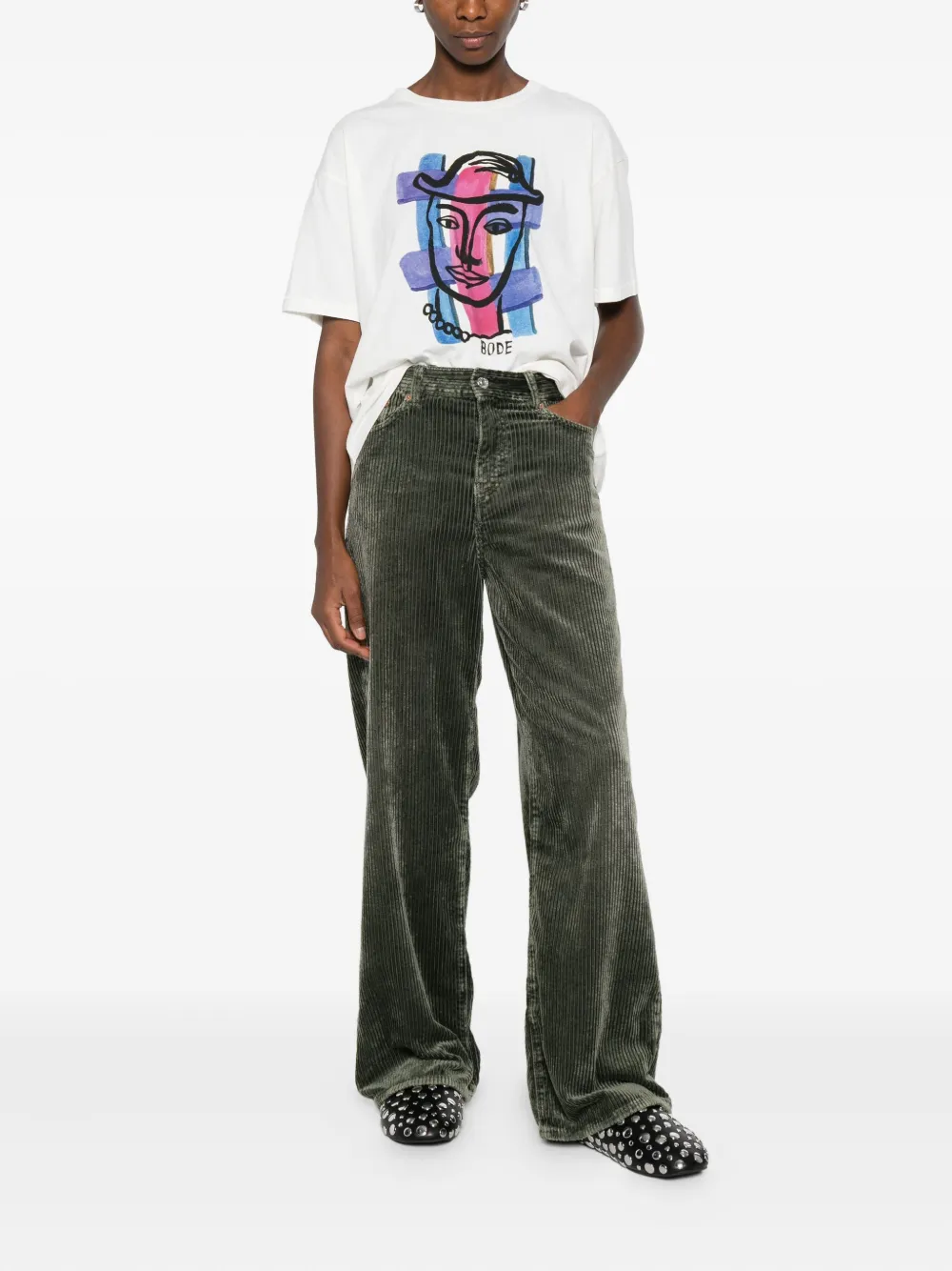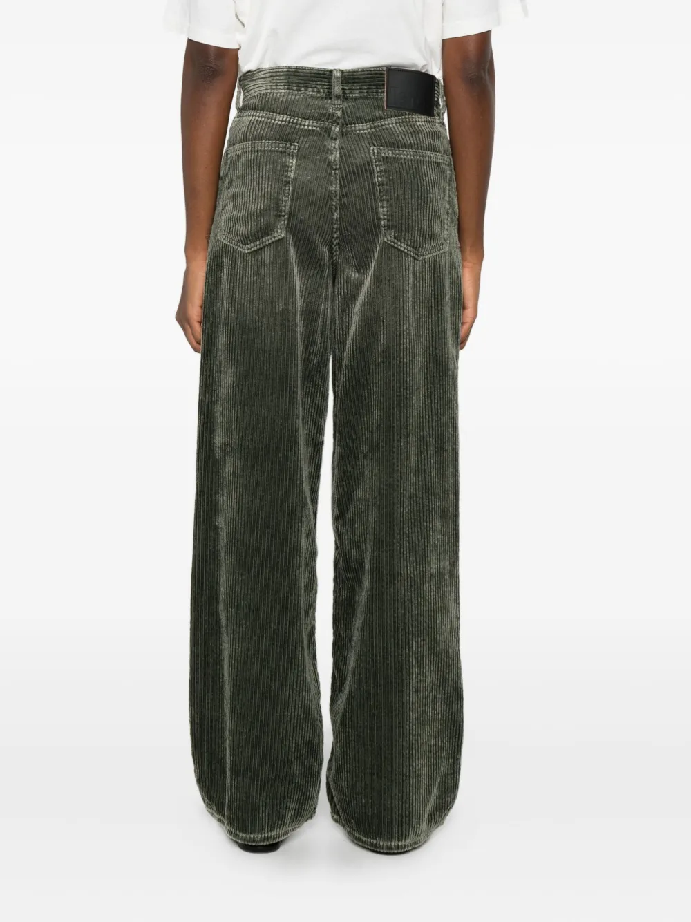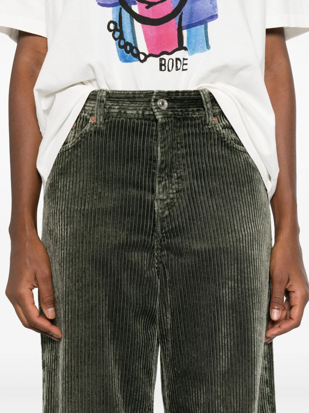 Шалфейно-зеленый цвет вельвет застежка на пуговицу и молнию спереди завышенная талия классические пять карманов прямая штанина