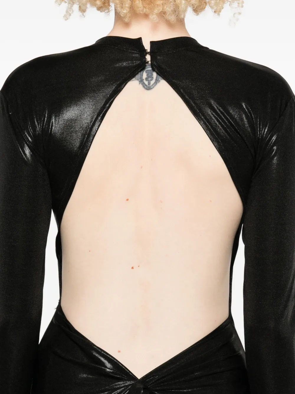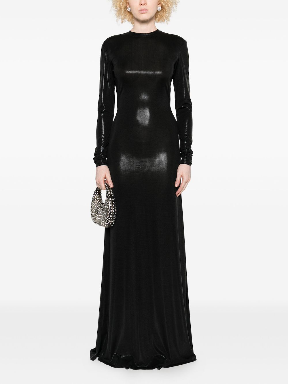 Черный металлический блеск длинные рукава круглый вырез юбка силуэта "А" приталенный лиф