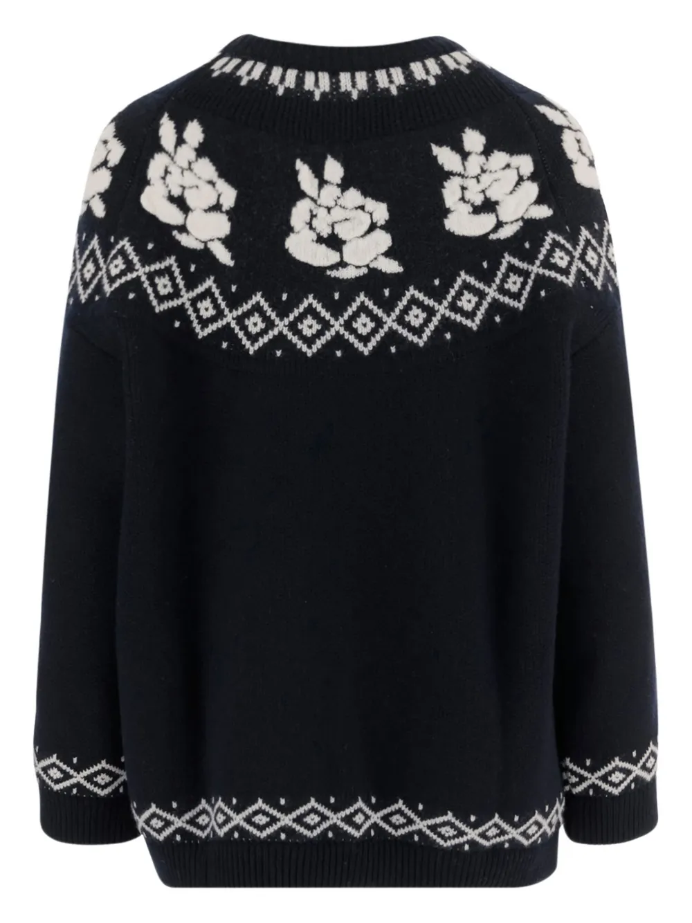 Темно-синий интарсийная вязка круглый вырез длинные рукава прямой низ
