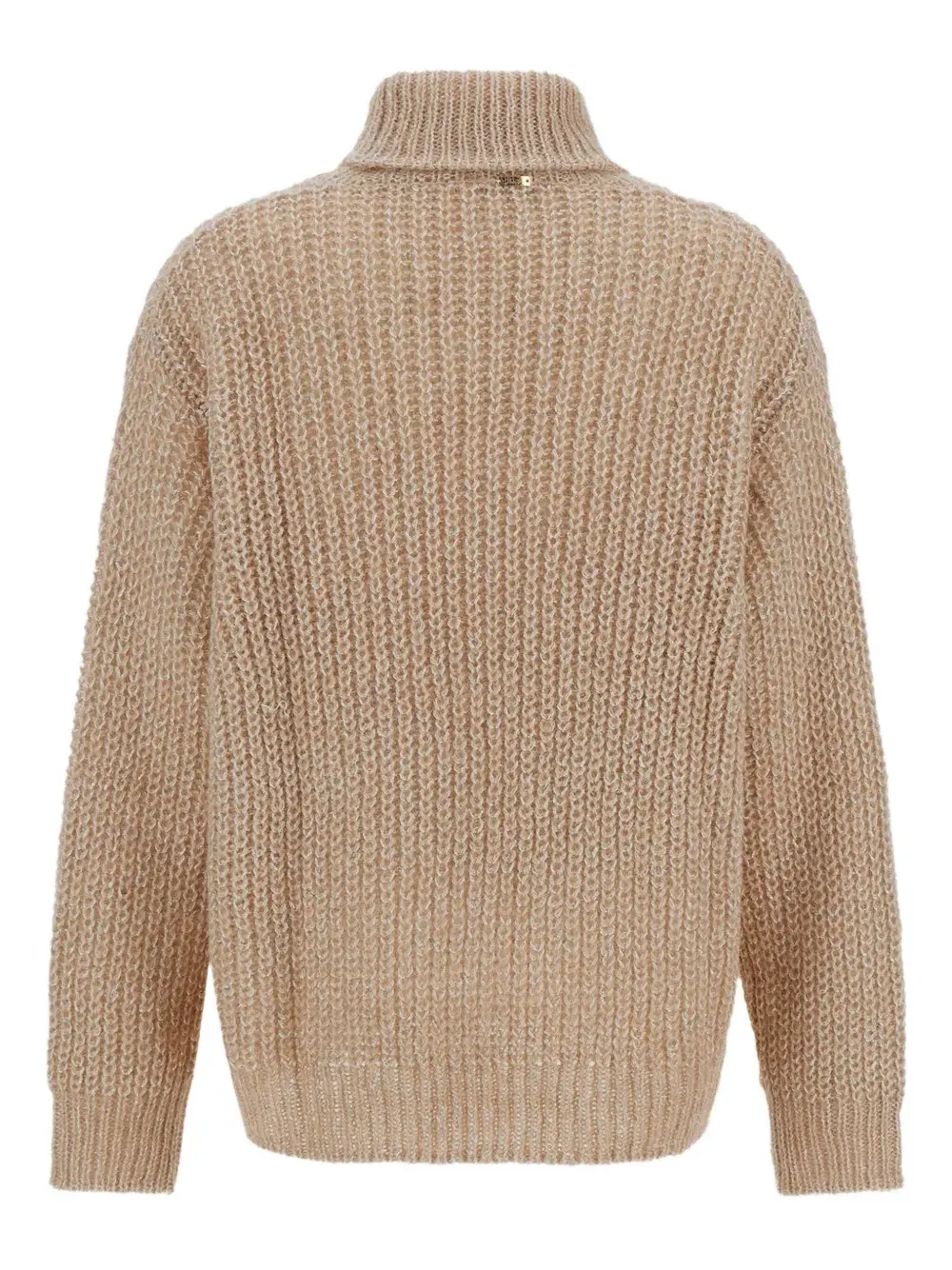 Бежевый водолазка вязаный в рубчик длинные рукава свободный крой