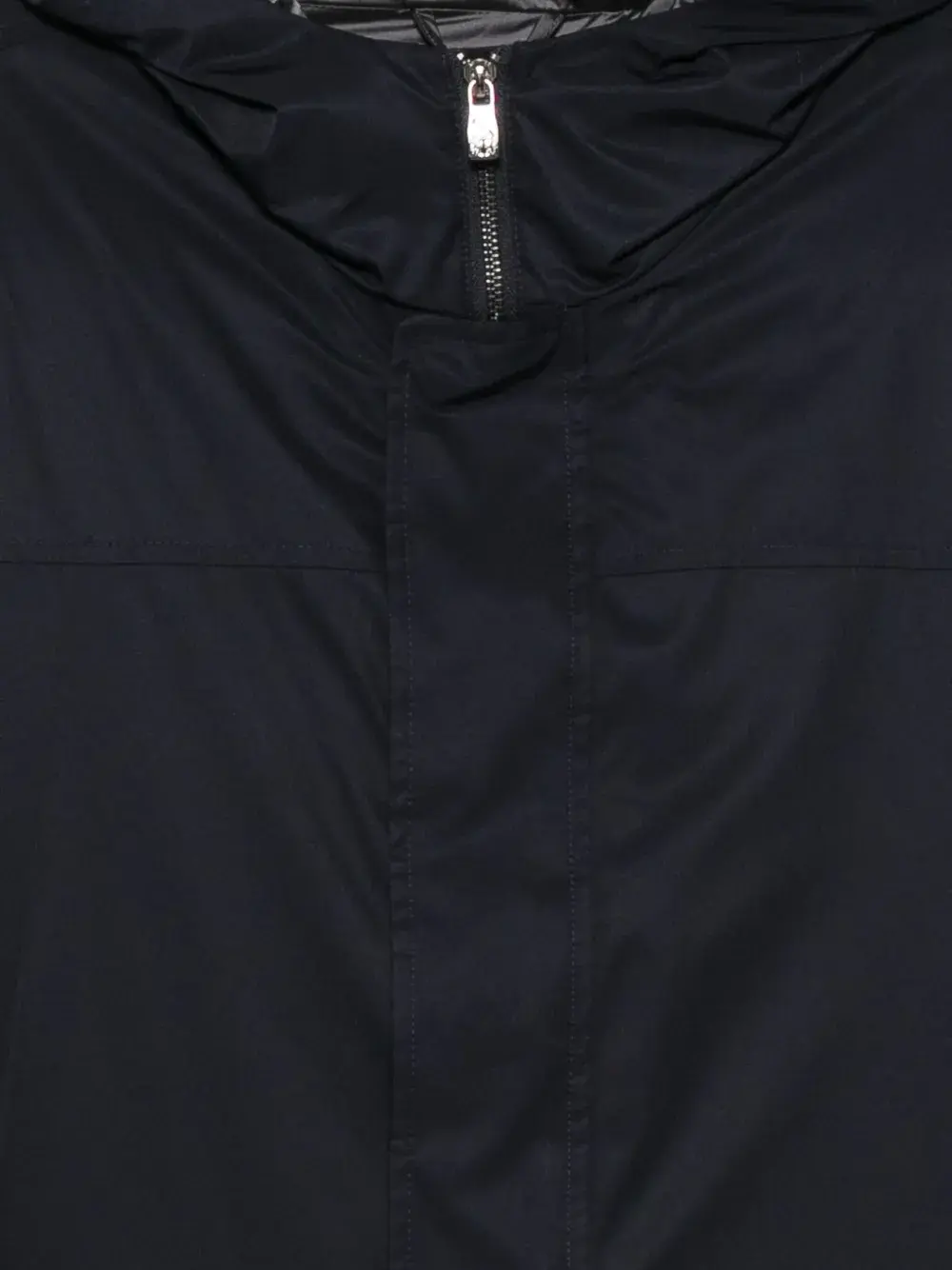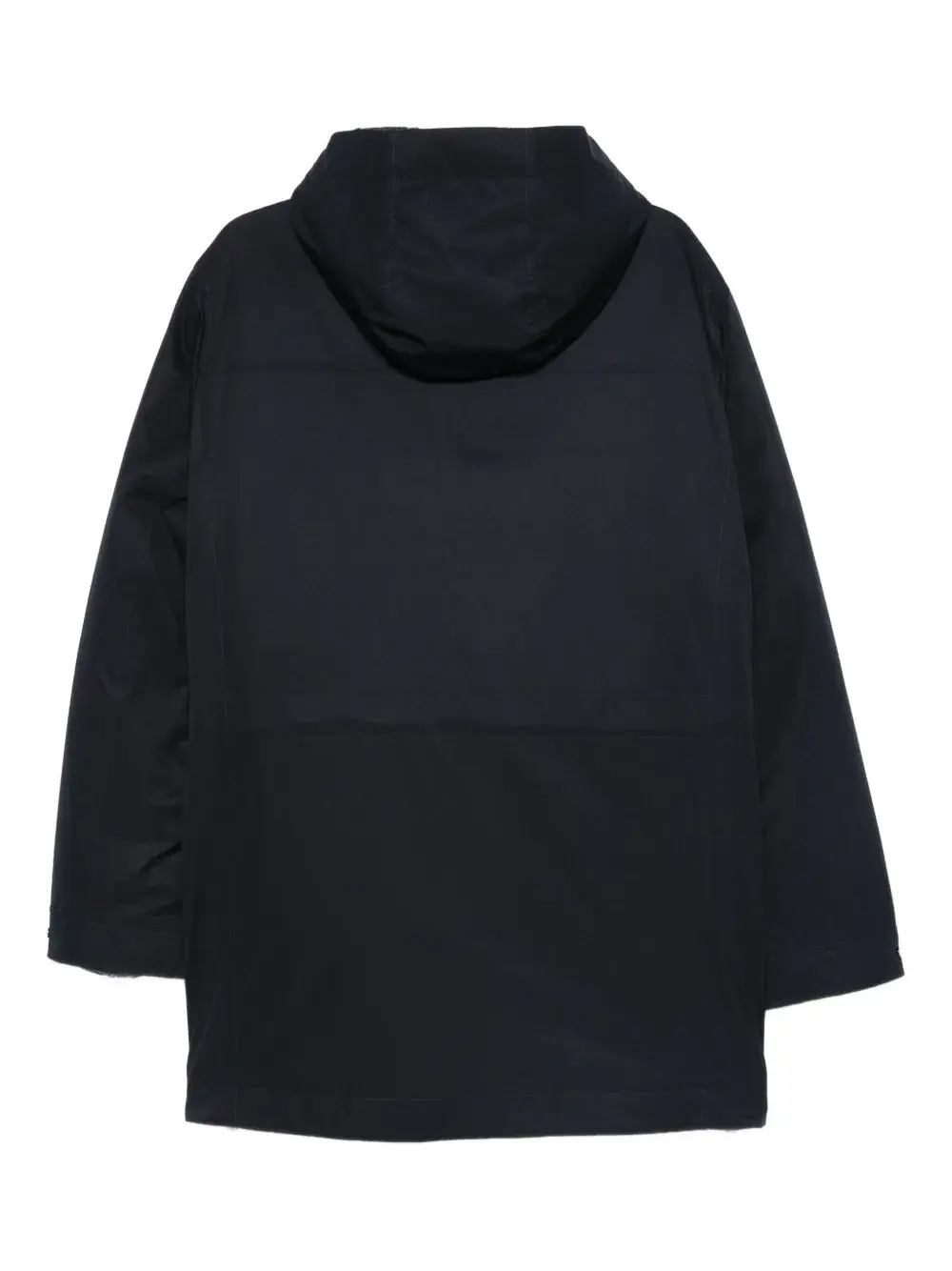 Темно-синий классический капюшон скрытая застежка спереди боковые карманы манжеты на пуговицах молния на нижнем крае